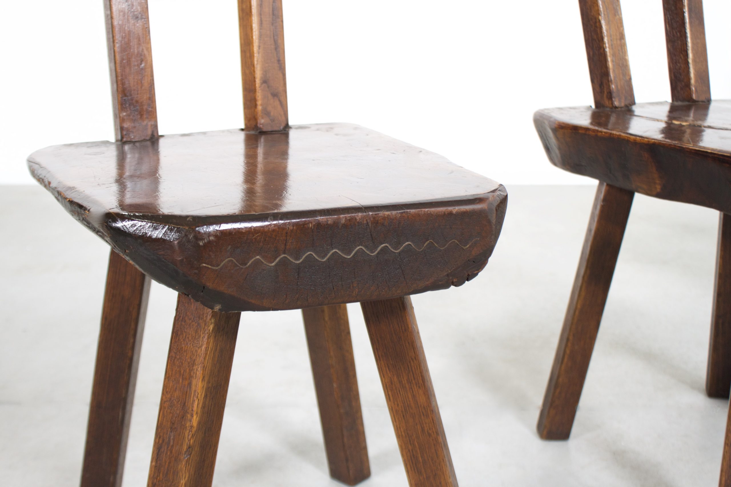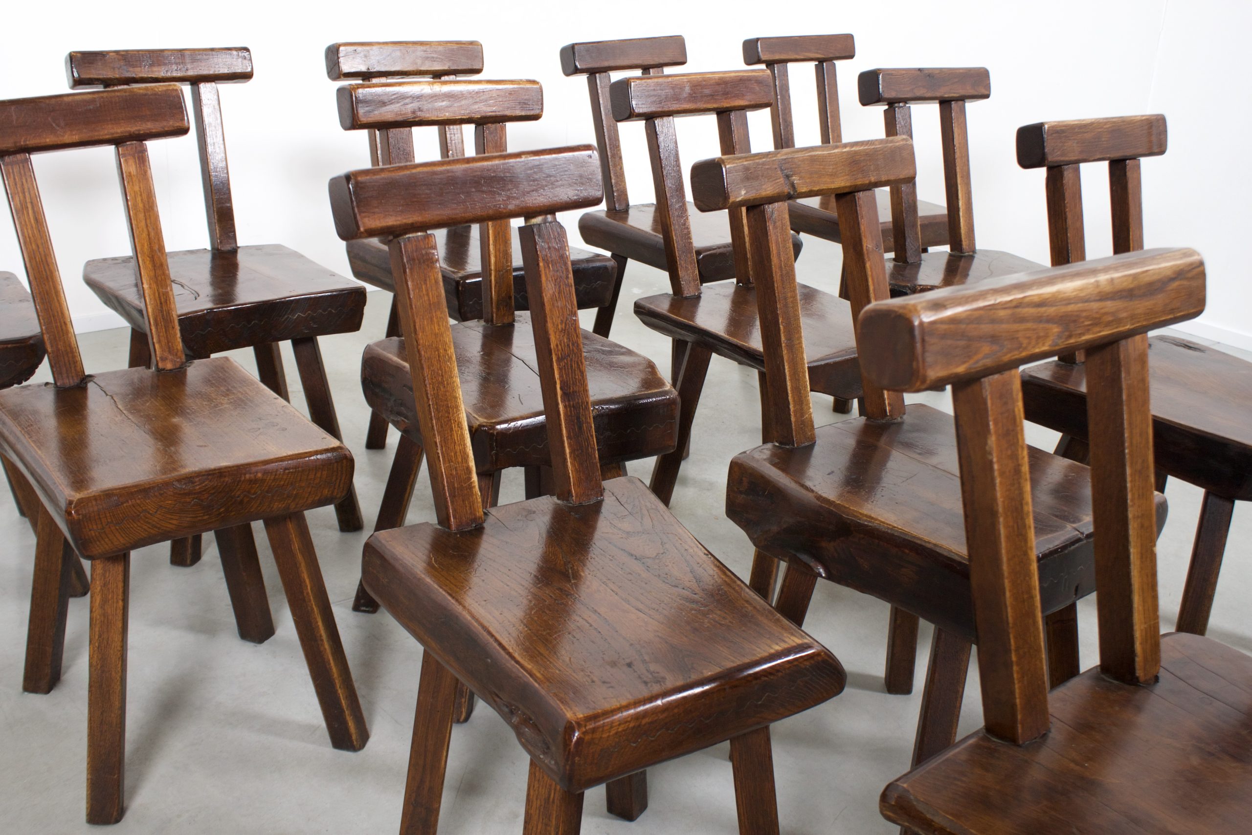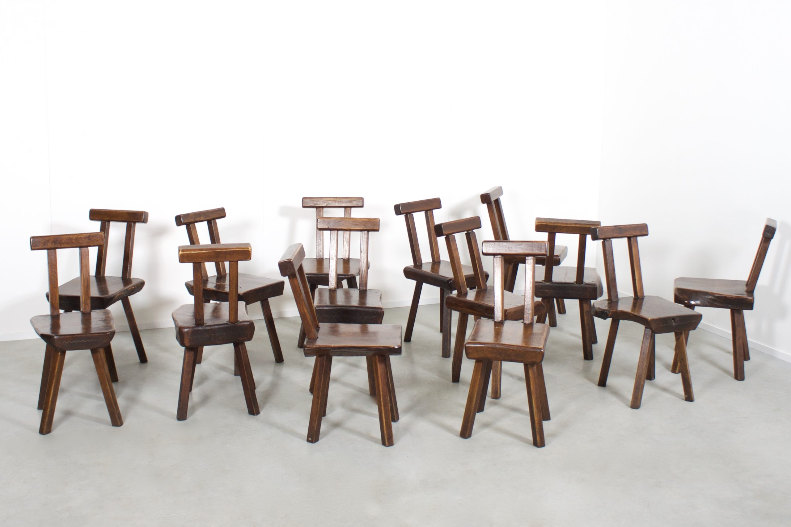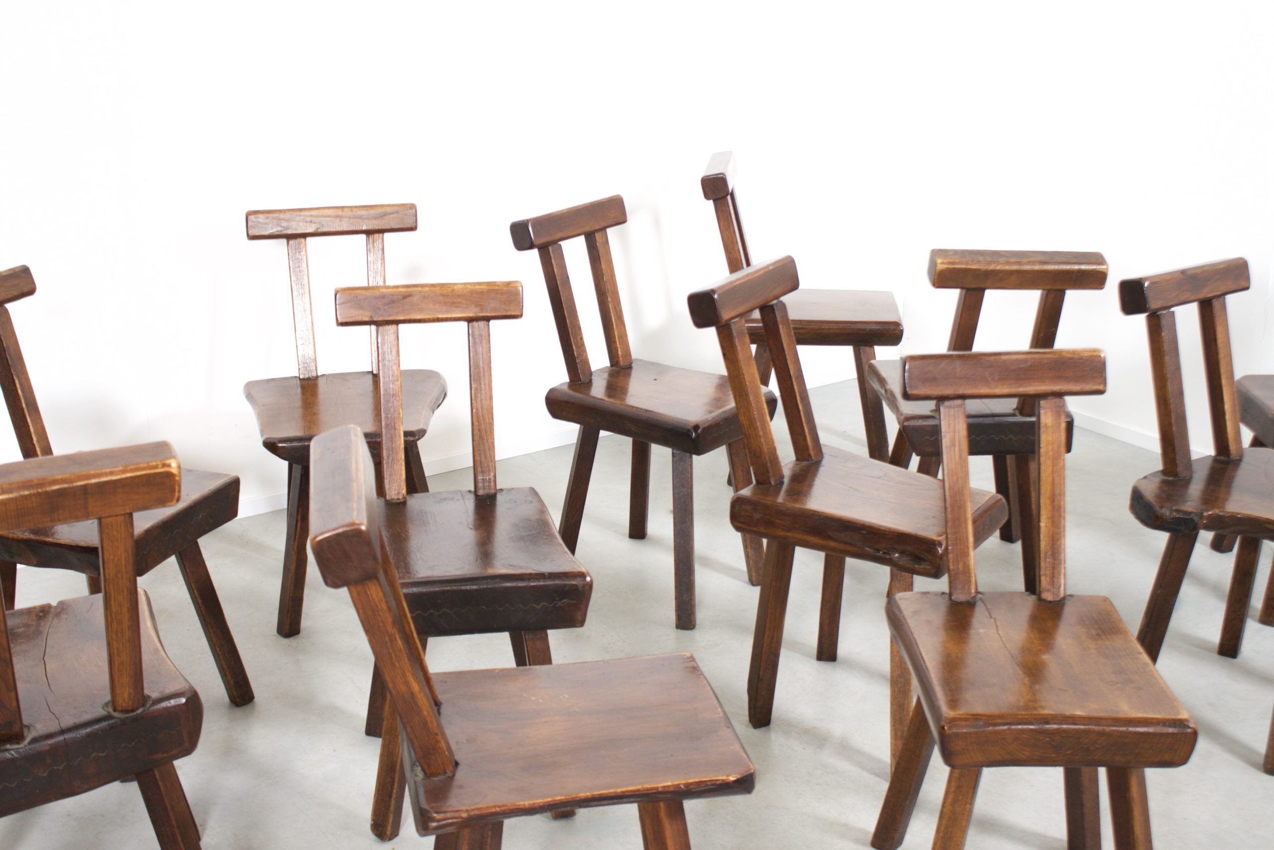 15 Sculptural Brutalist Chairs in Solid Pine by Mobichalet, 1950s