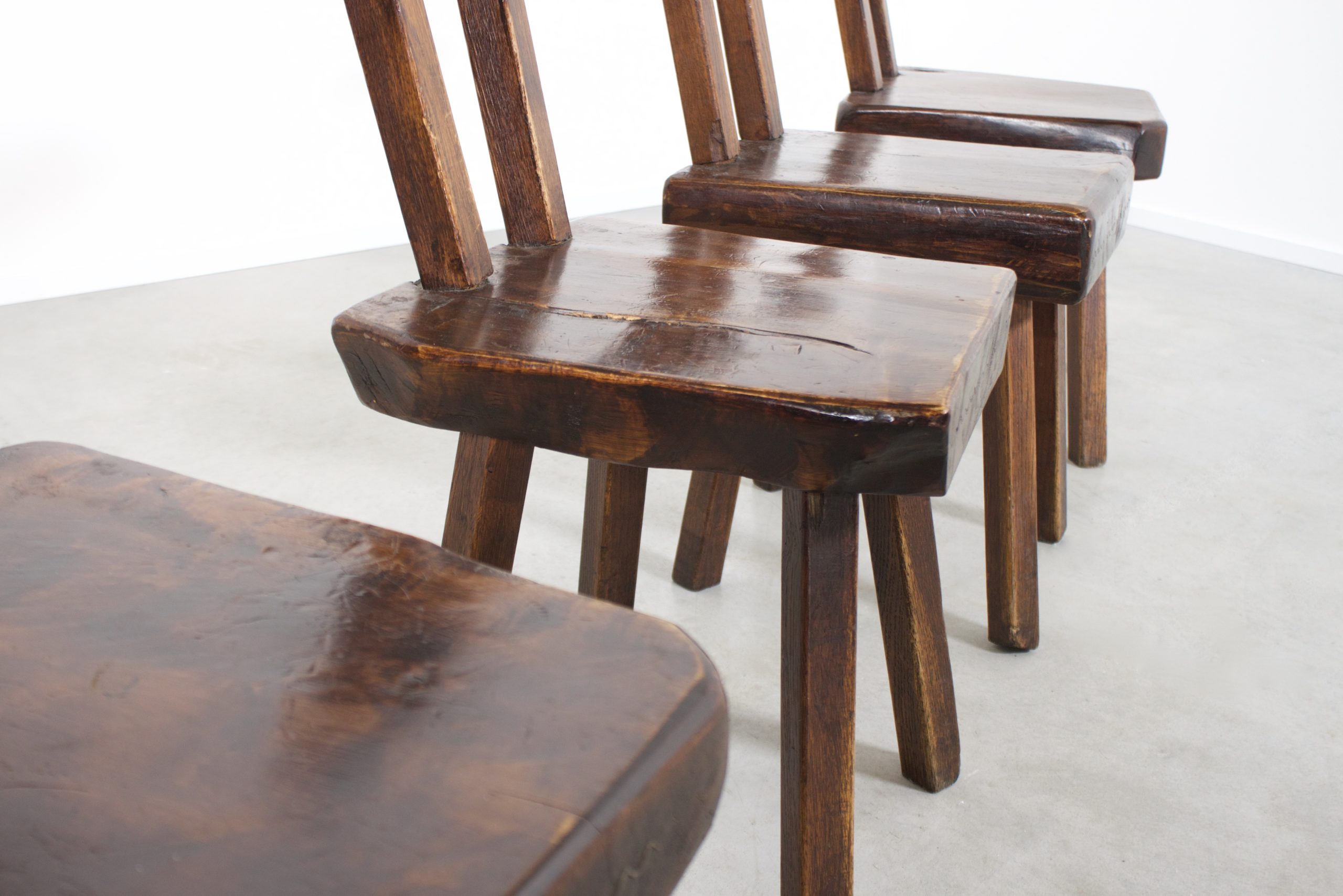 The chairs are handmade and are all slightly different in form which gives them their rustic character.