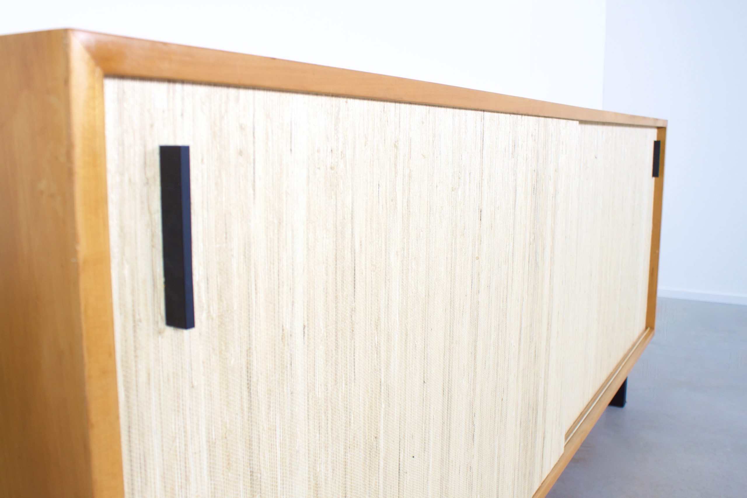 Beautiful Midcentury Maple and Cane Sideboard with Sliding Doors