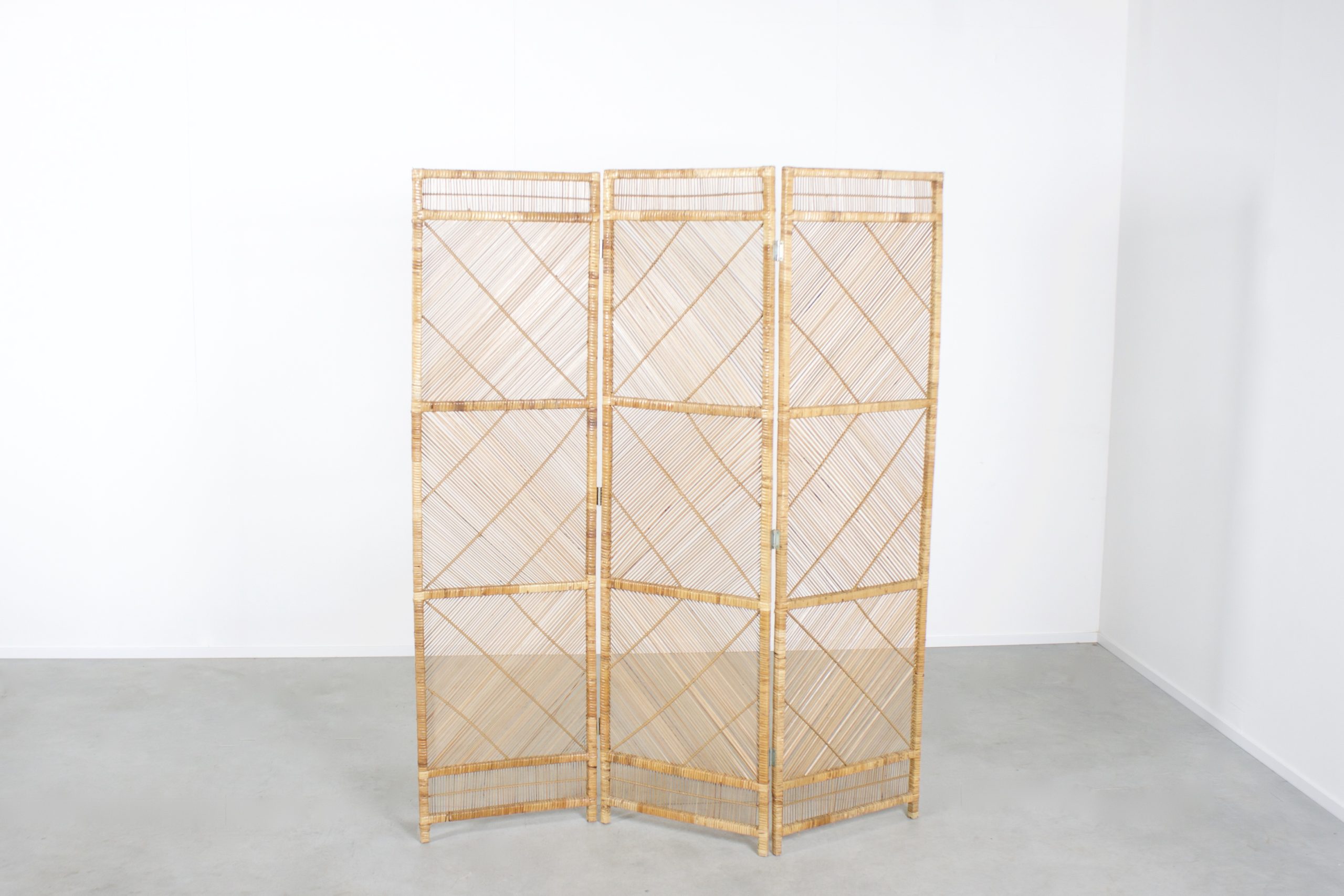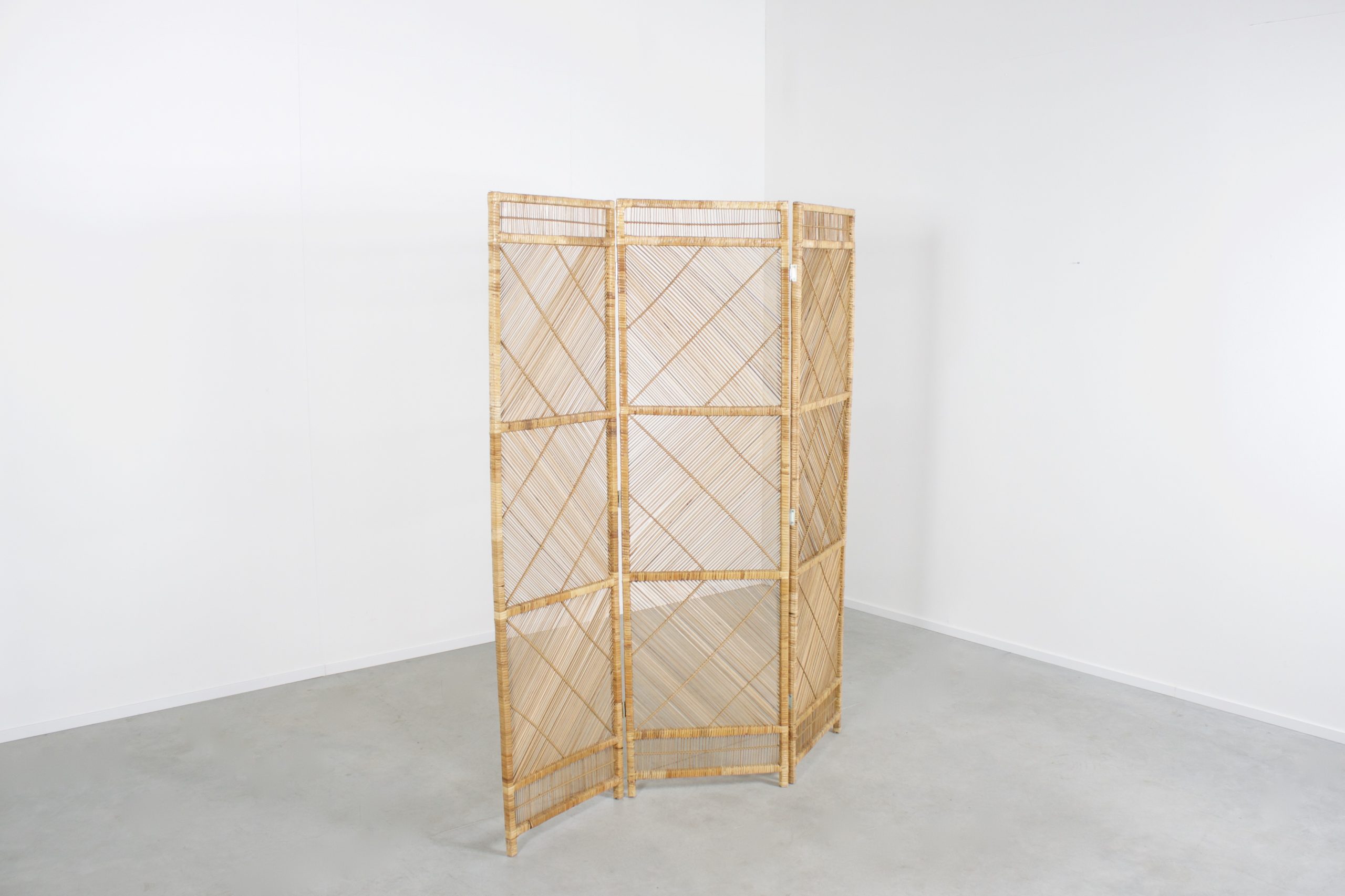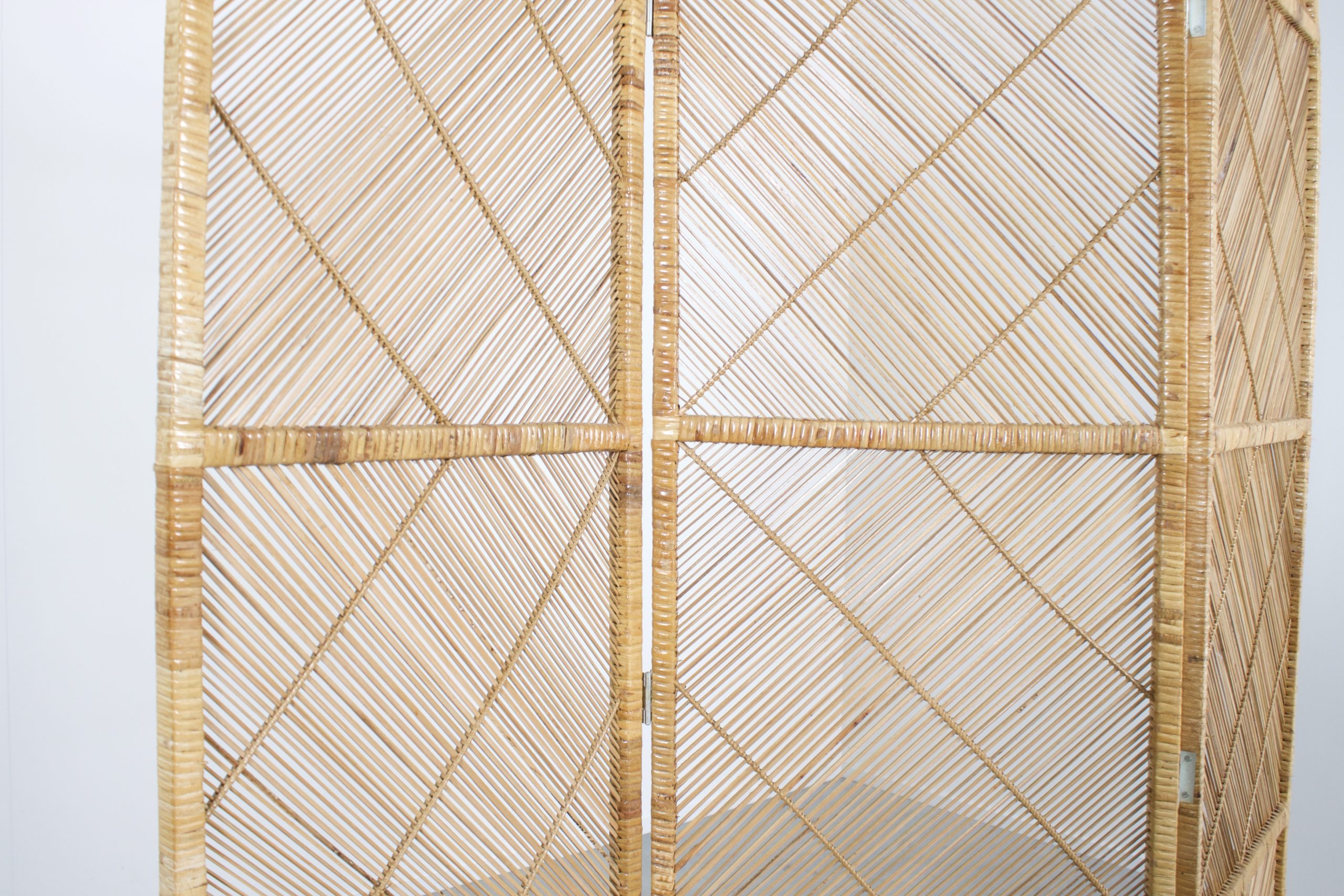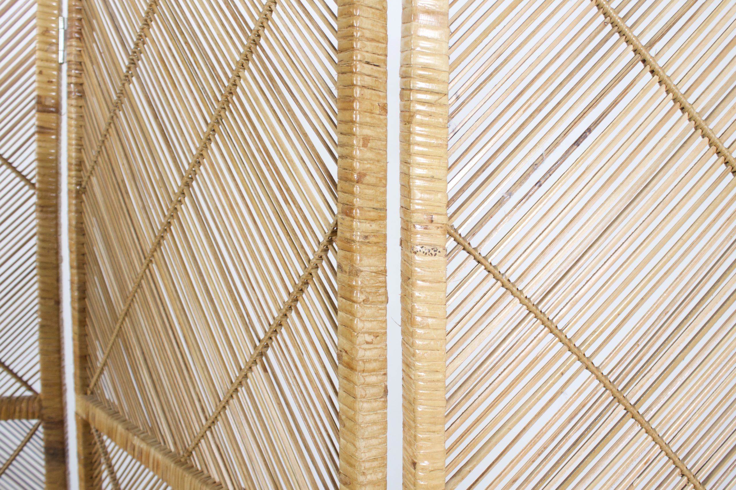 Graphic Midcentury Bamboo and Rattan Folding Screen