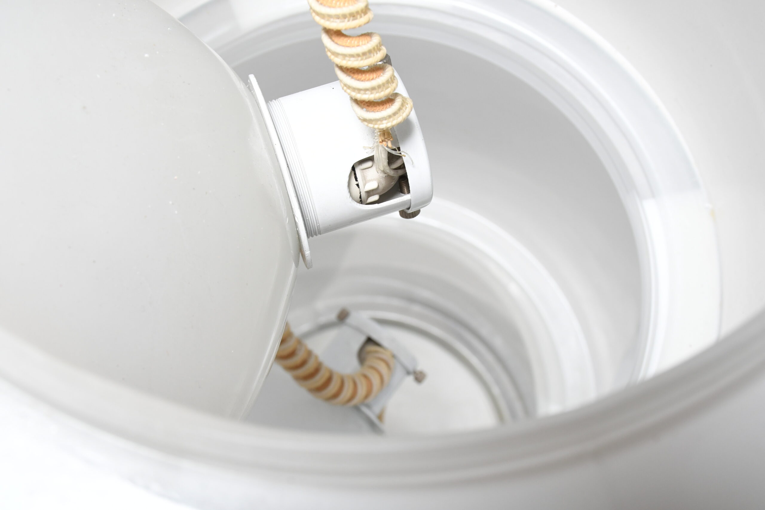 The lamp consists of 4 handblown clear and white textured Murano glass elements.