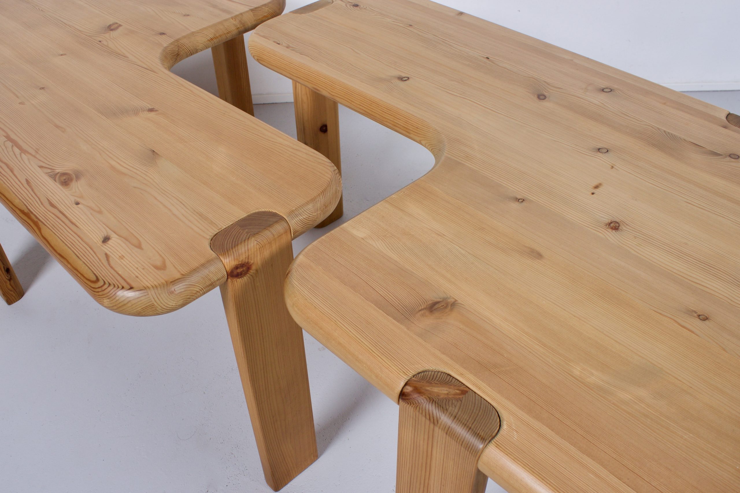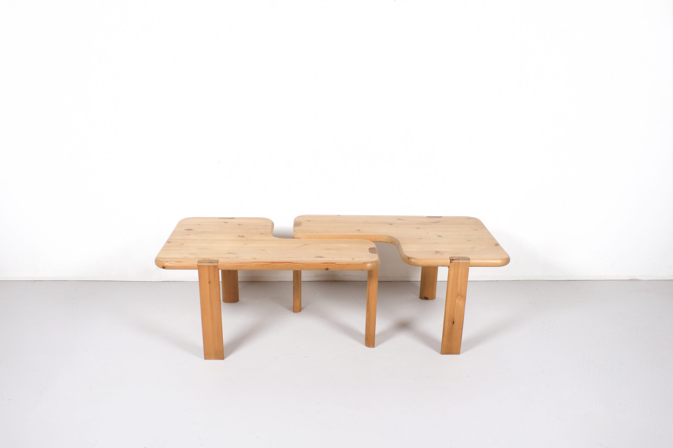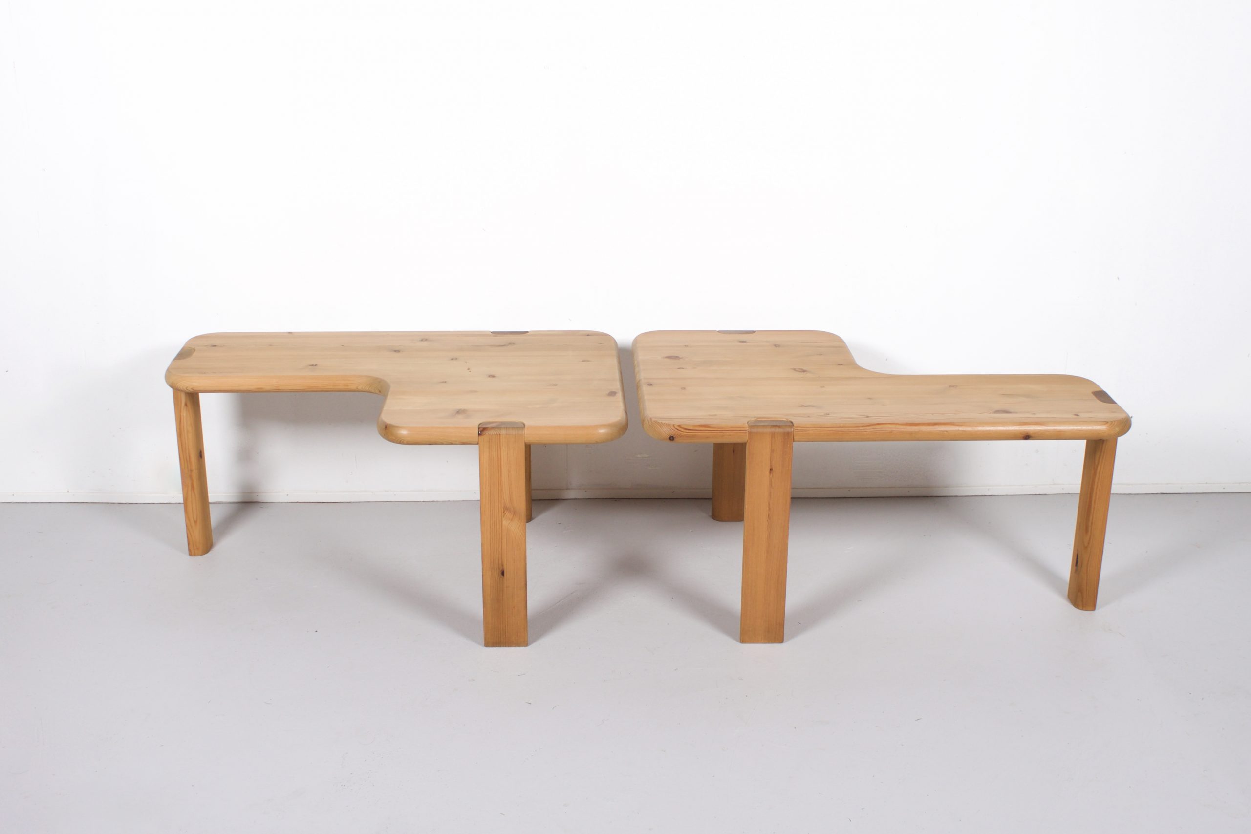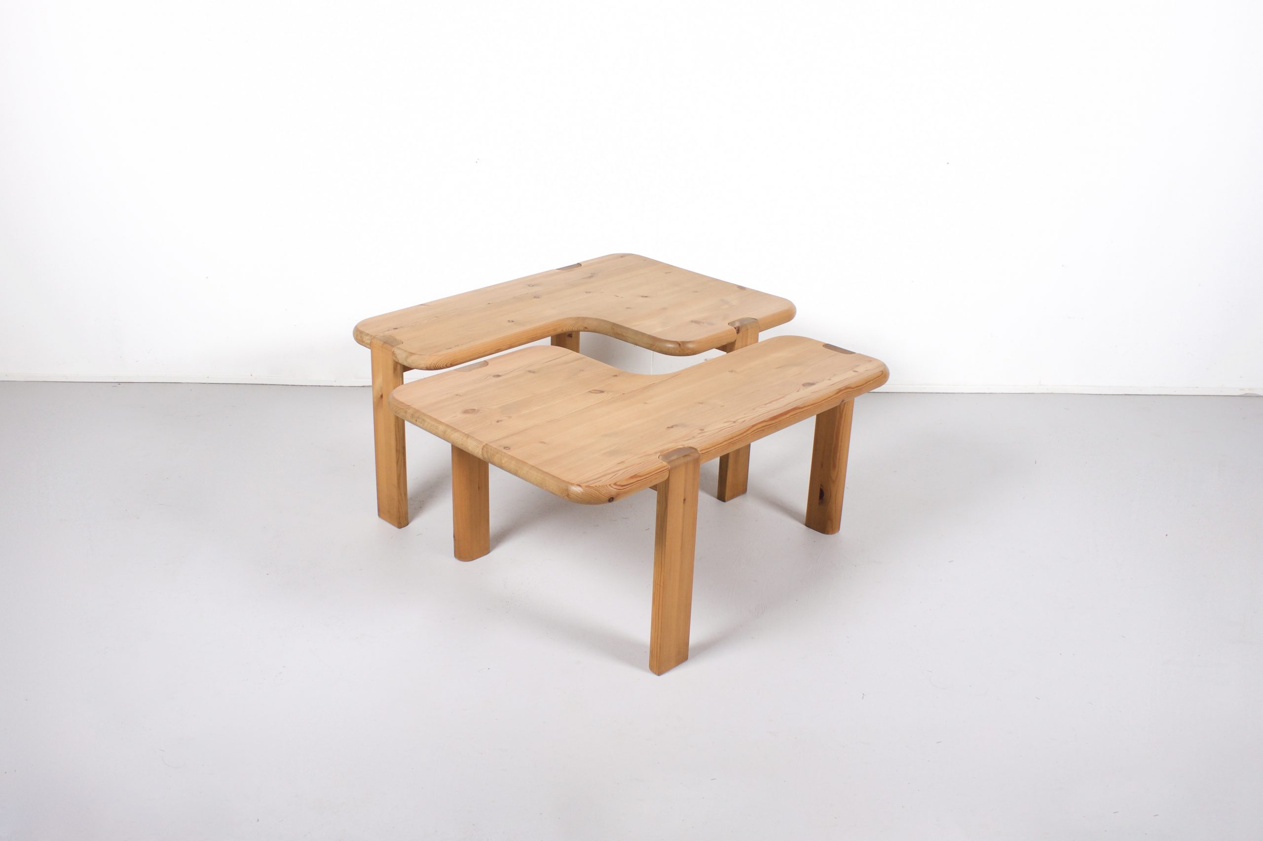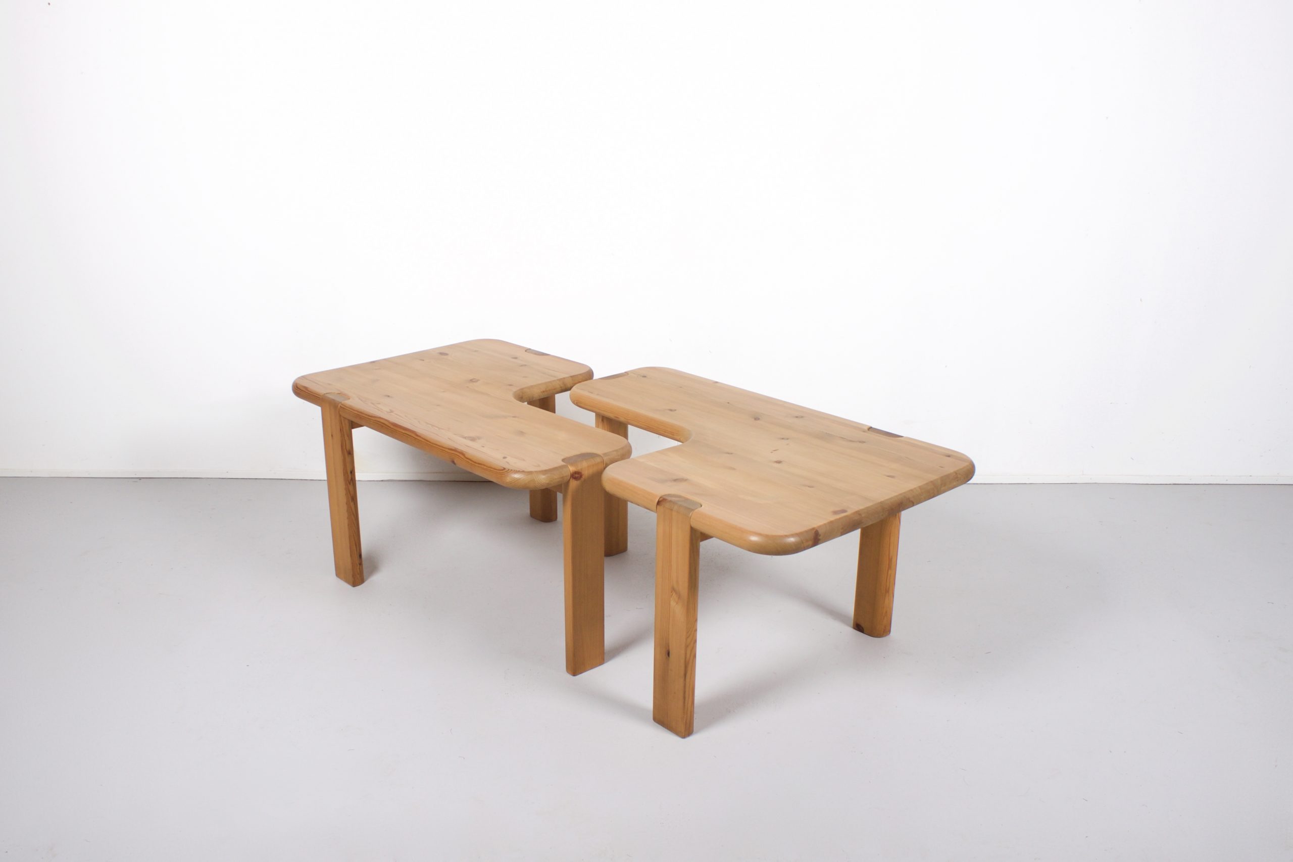 The tables are made of a solid heavy pine wood with rounded edges which gives a them beautiful organic shape. Stamped: Aksel Kjersgaard