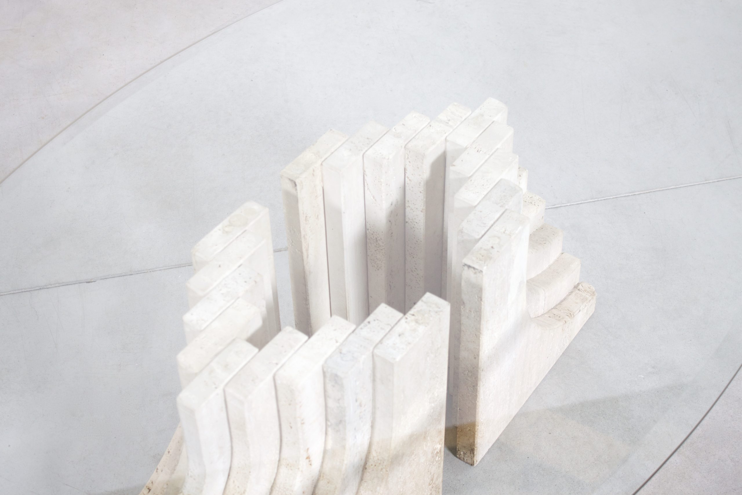 Sculptural Glass and Travertine Coffee Table, 1970s