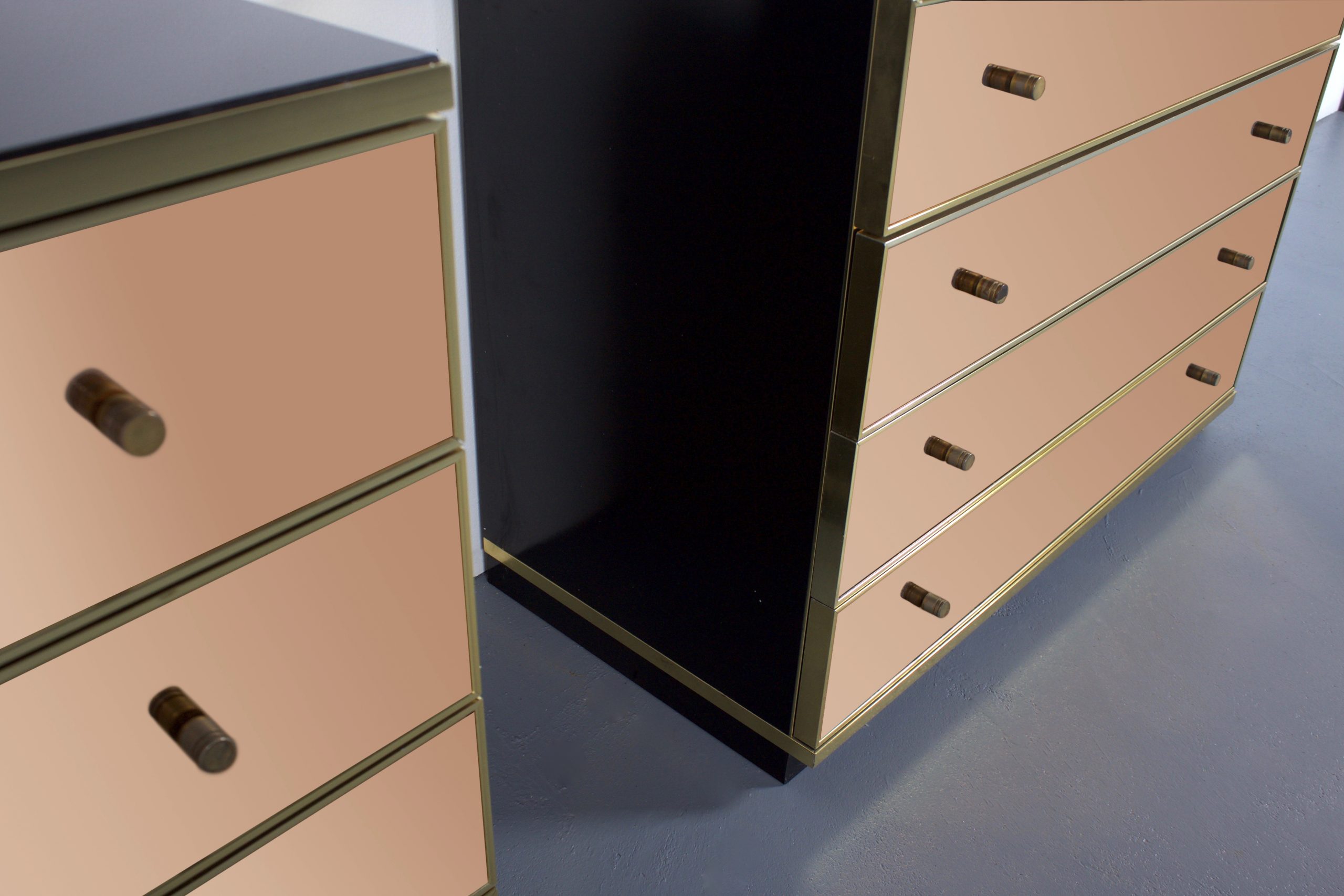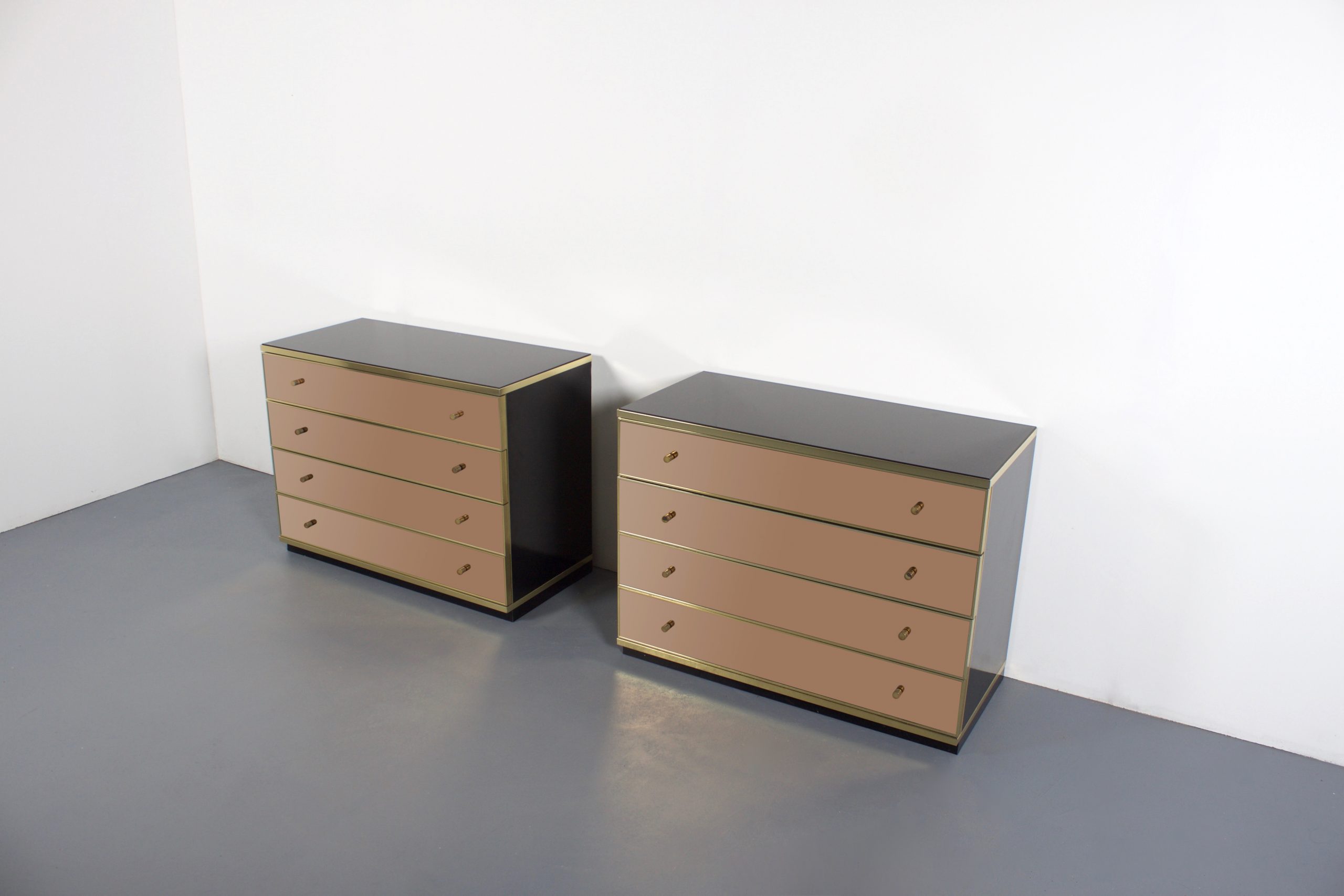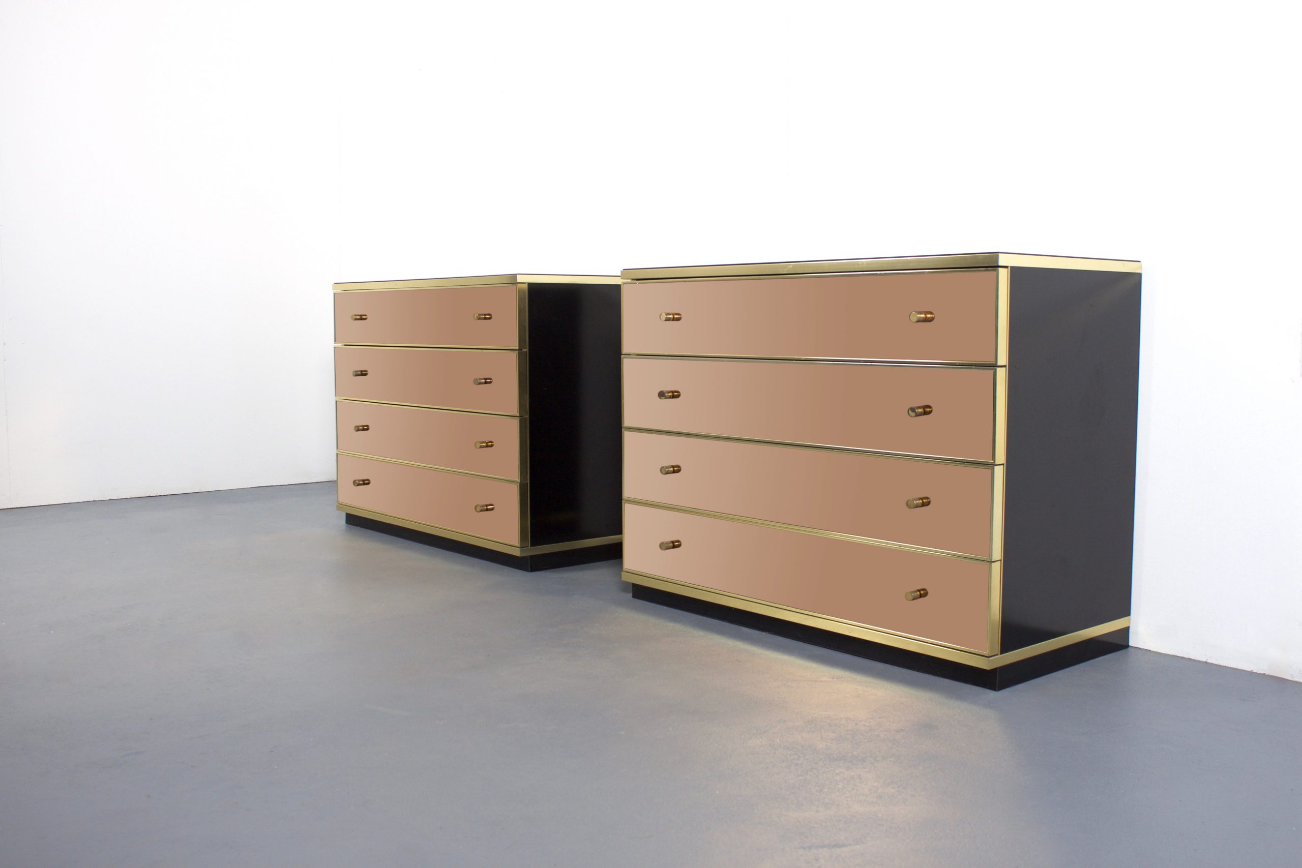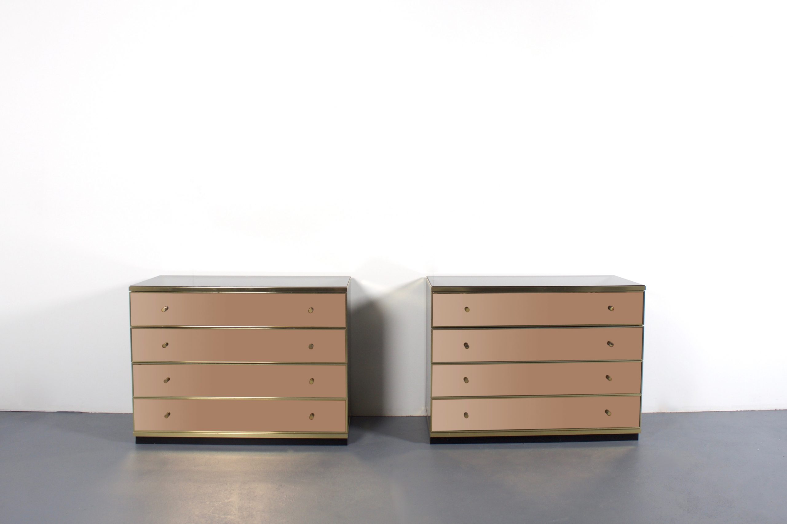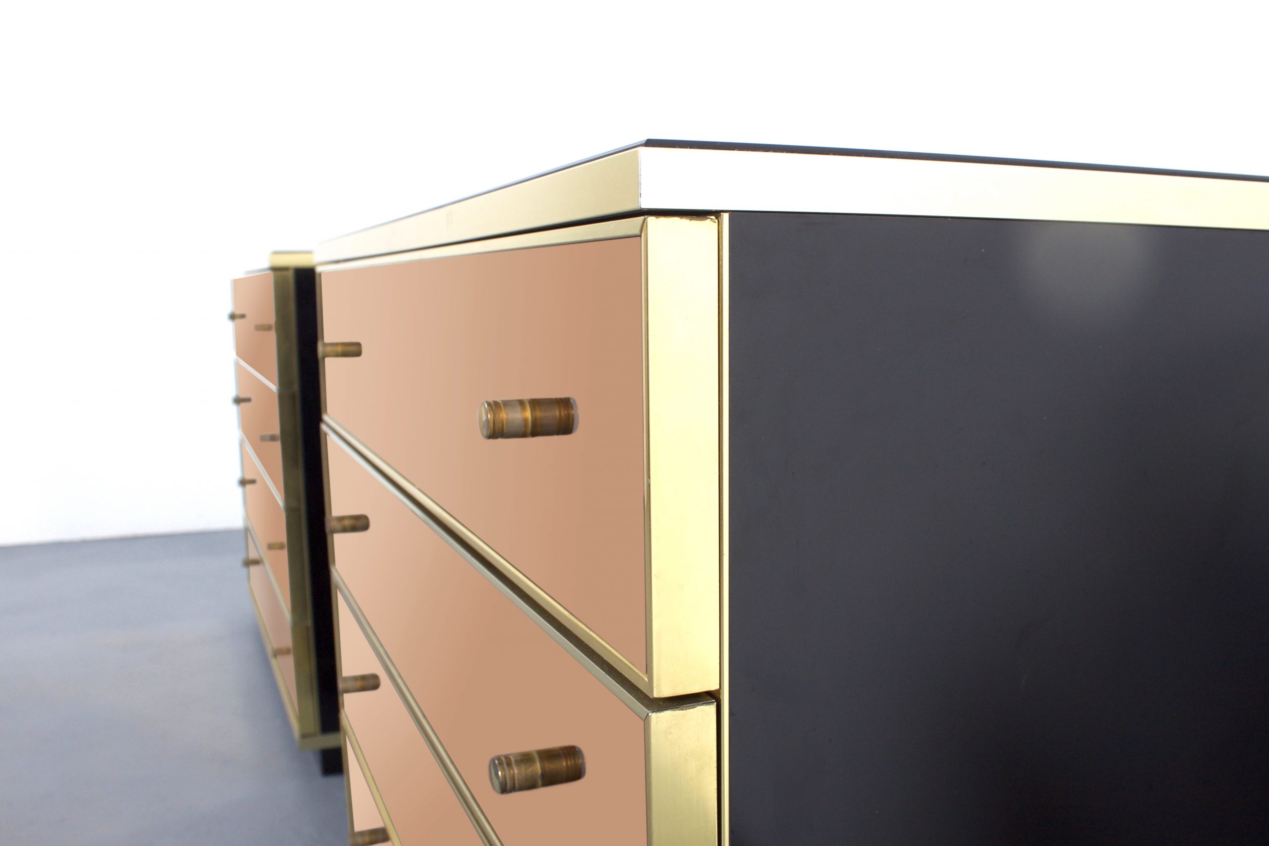 Set of Brass and Mirror Chest of Drawers/ Sideboards, Renato Zevi for Metal Arte