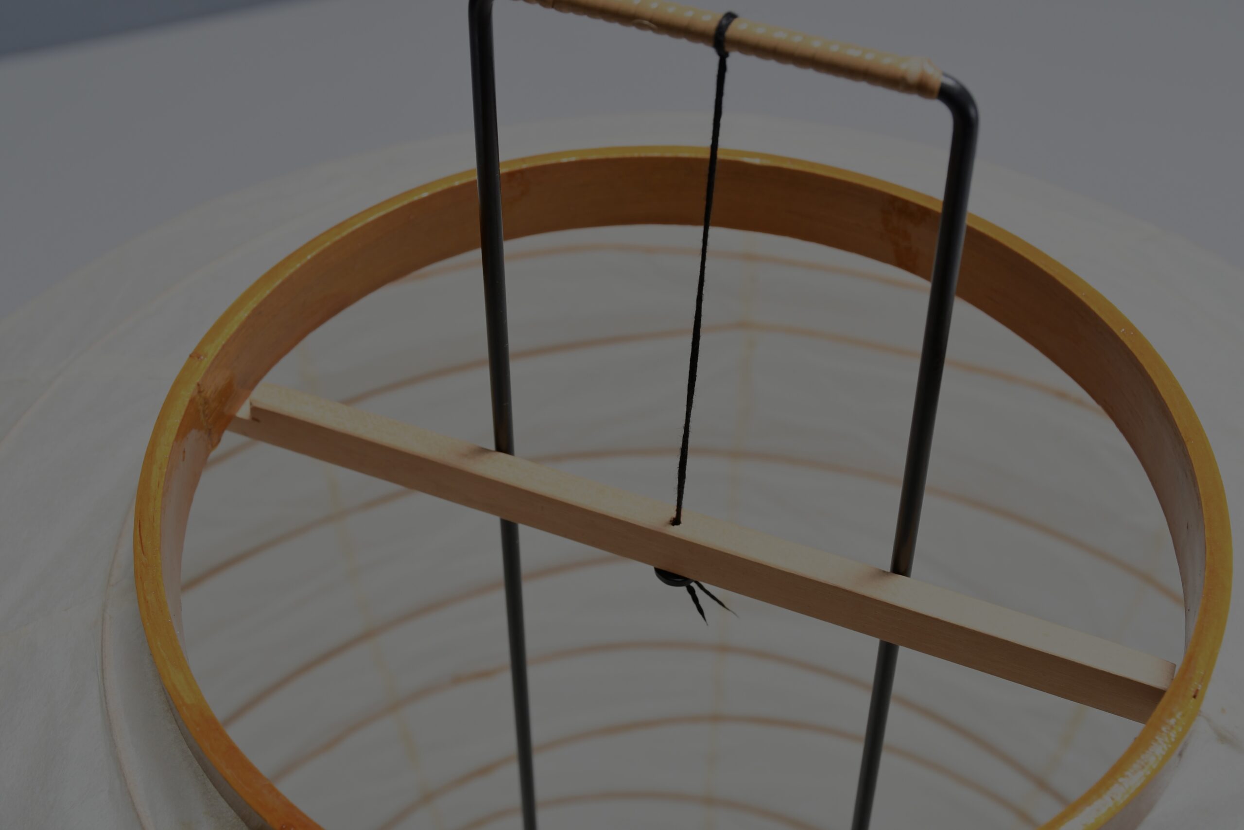 The lamp is made out of Japanese washi paper, bamboo and metal.