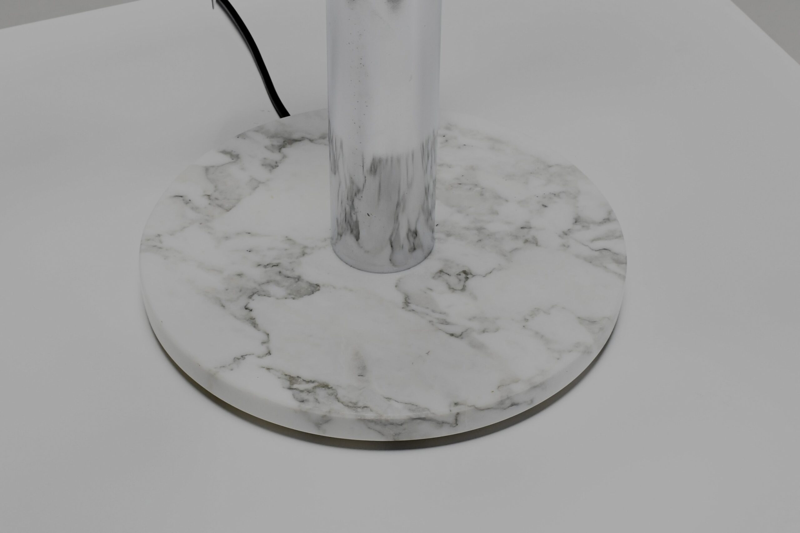 The base is crafted from polished Arabescato marble, renowned for its exquisite veining and luxurious finish.