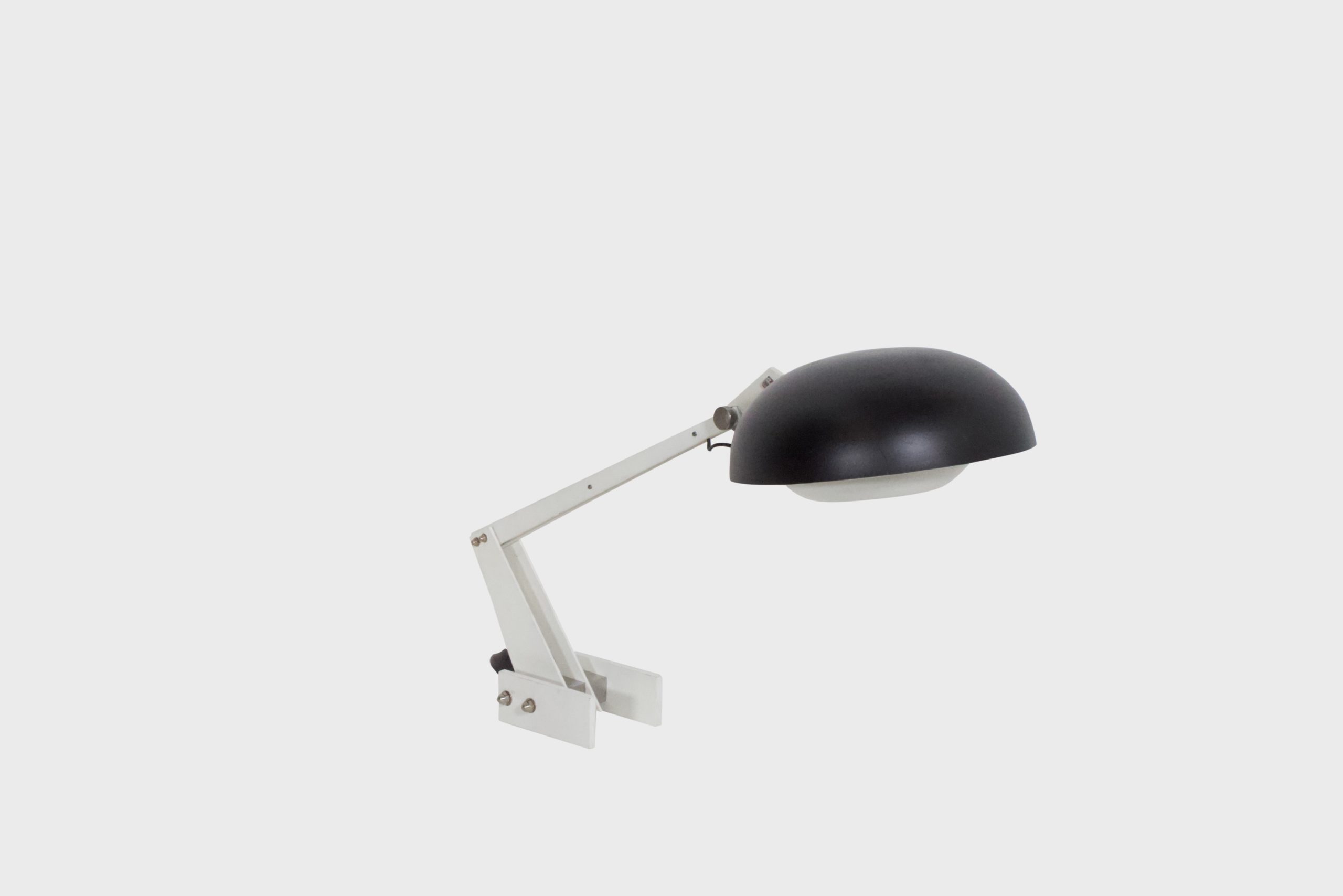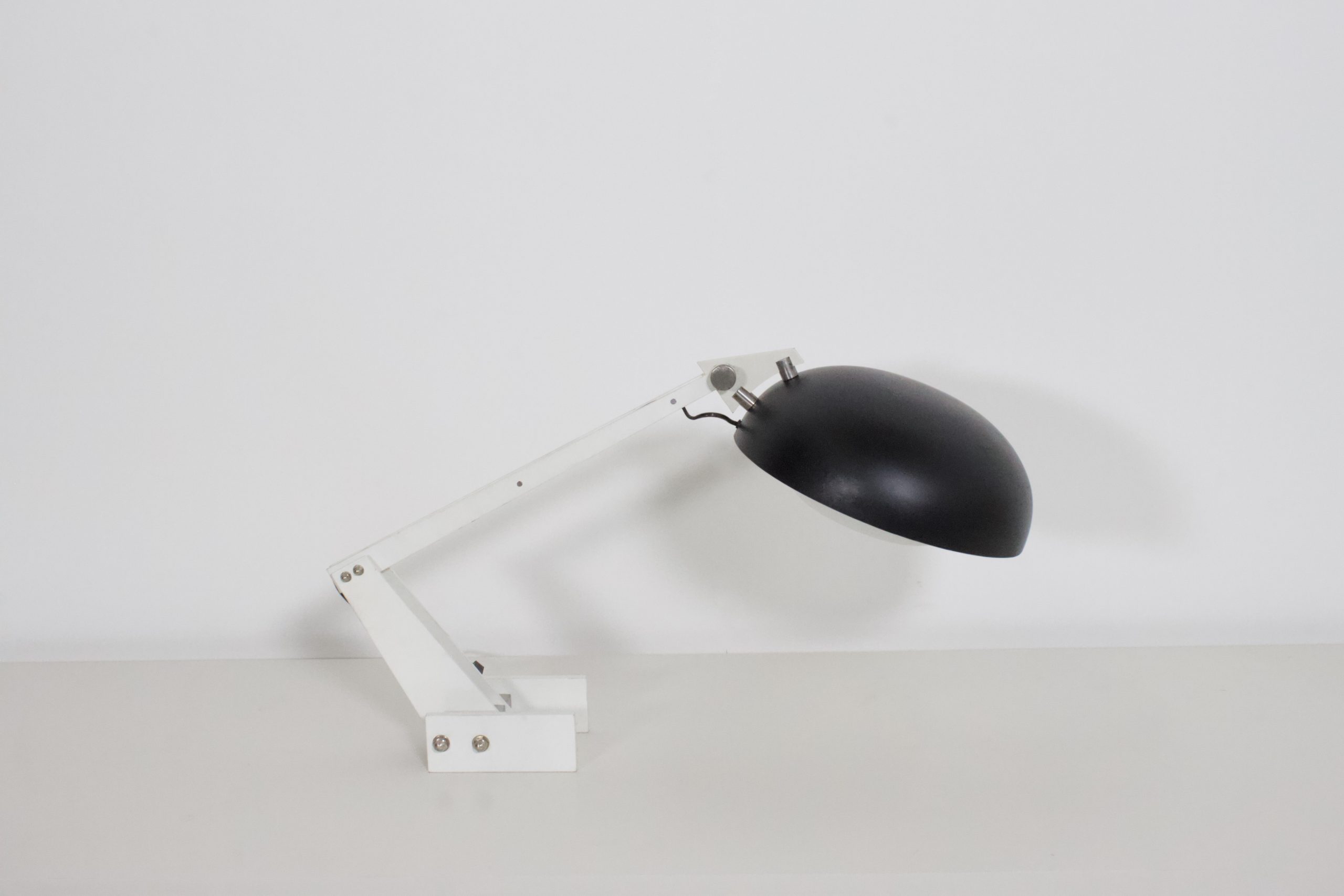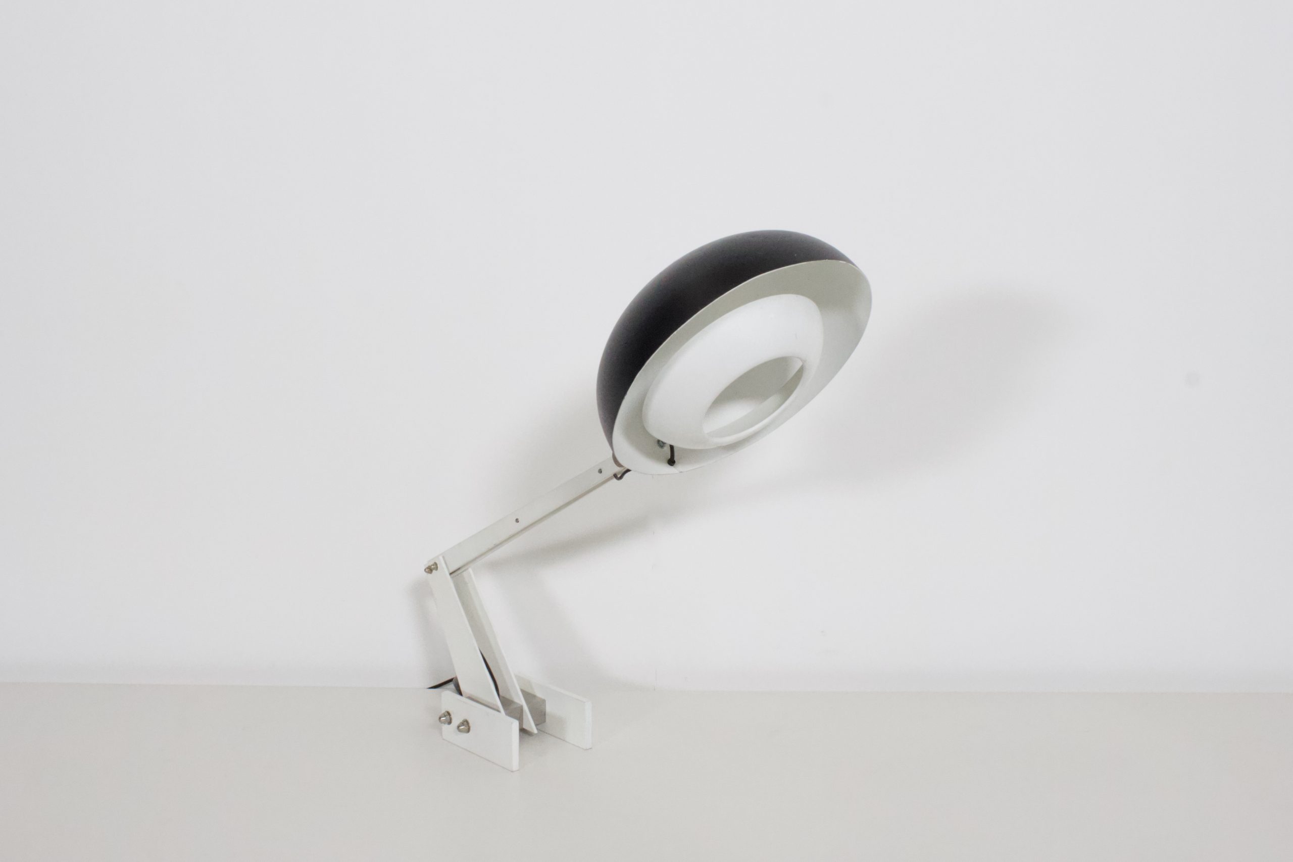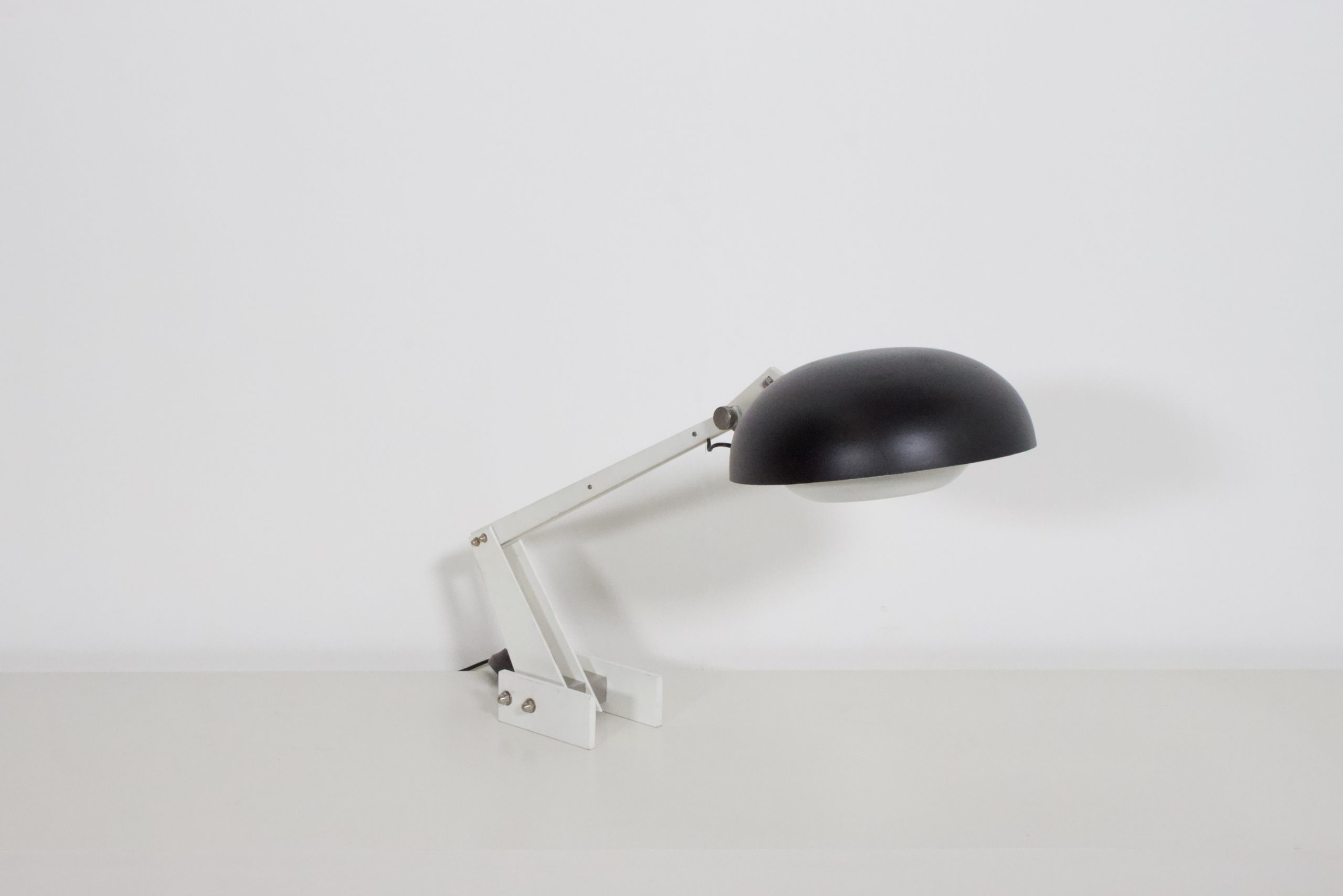 Very rare industrial table / desk lamp by Wim Rietveld in good condition.