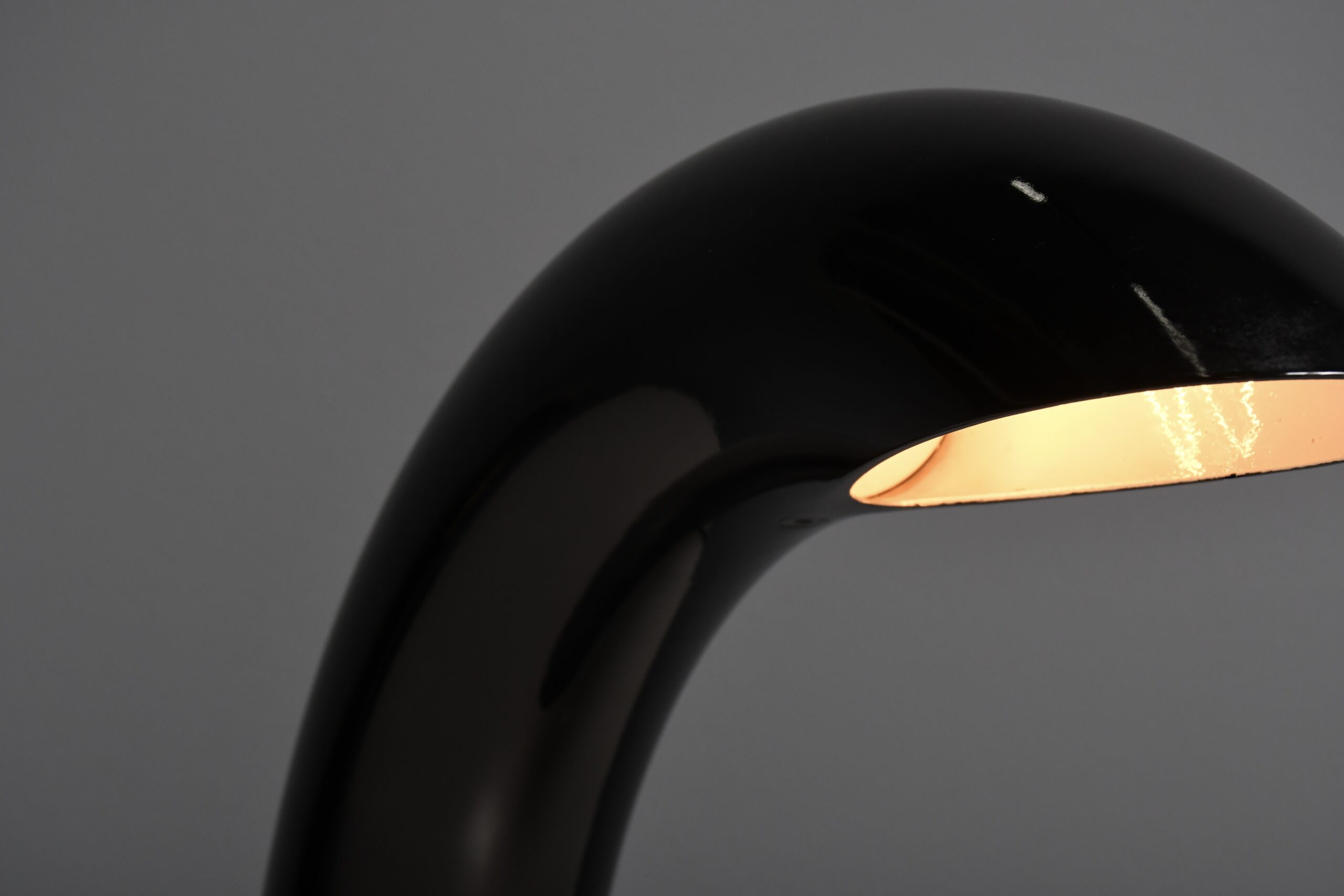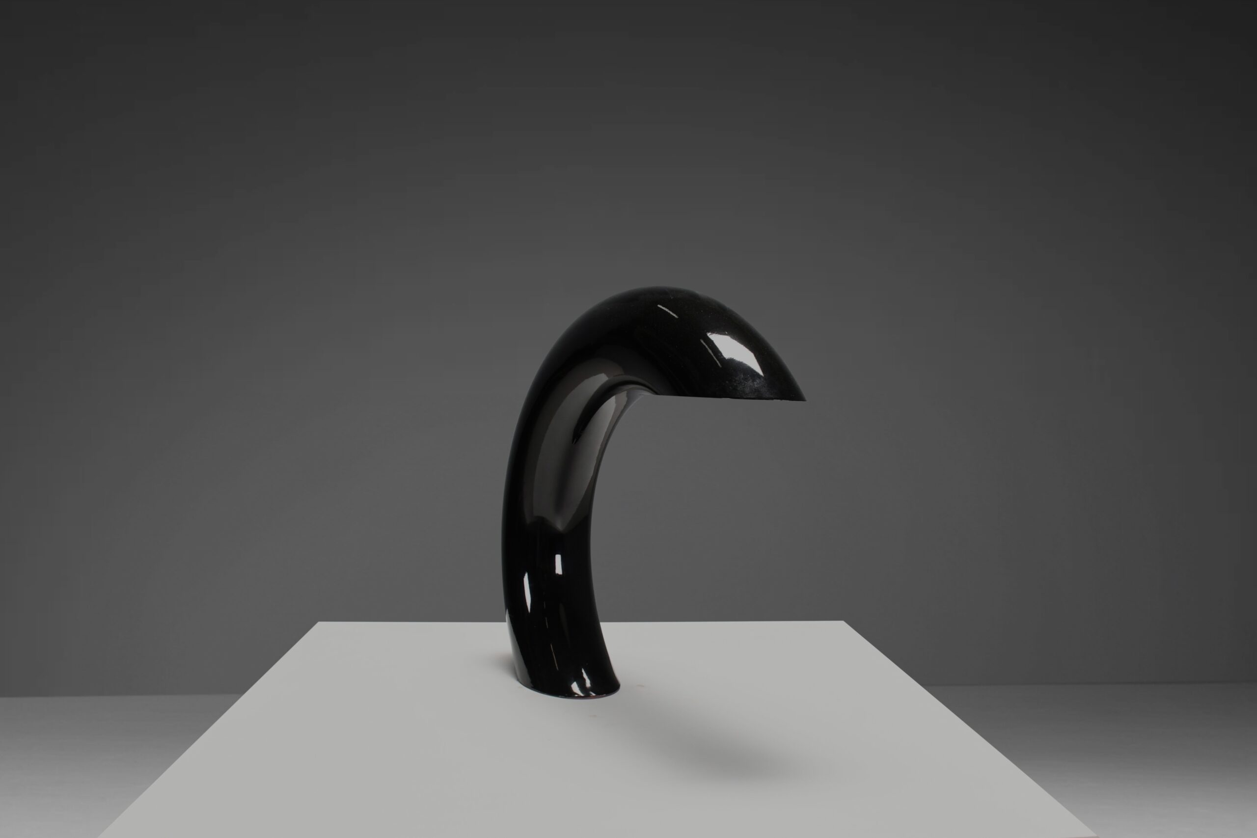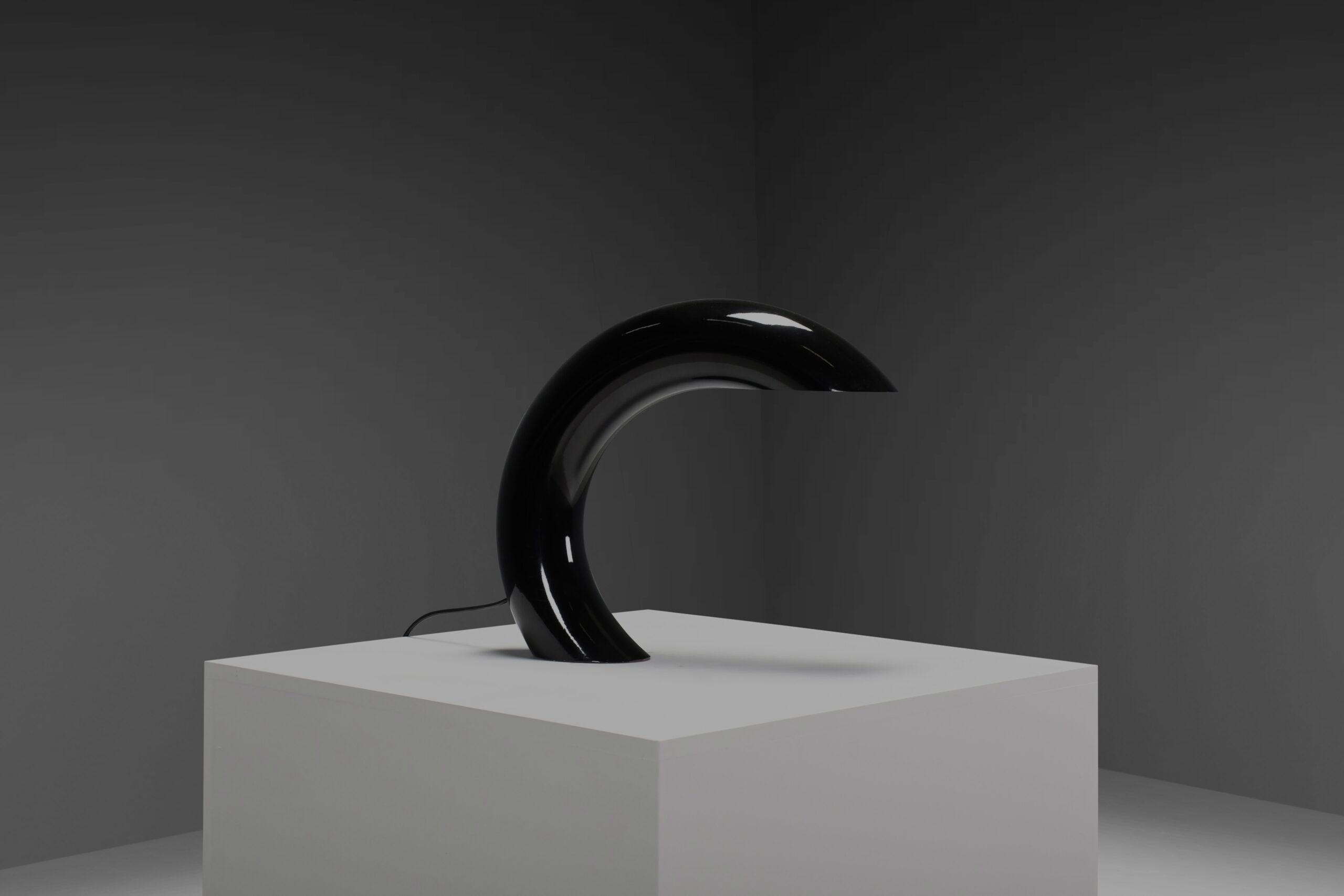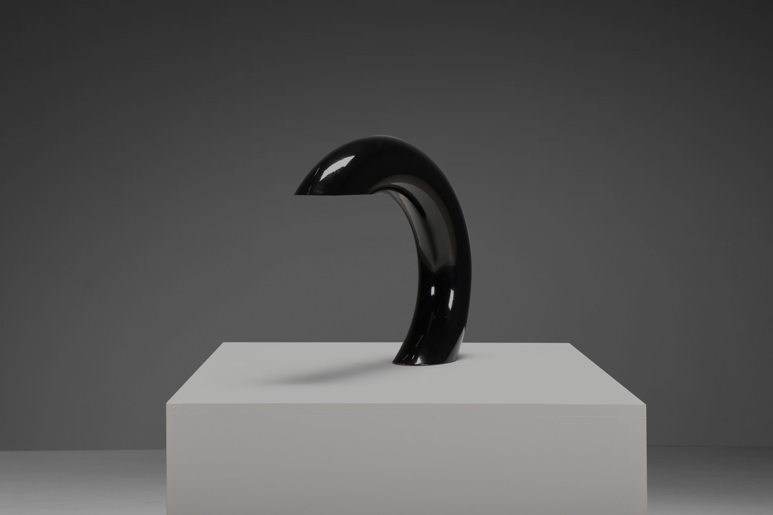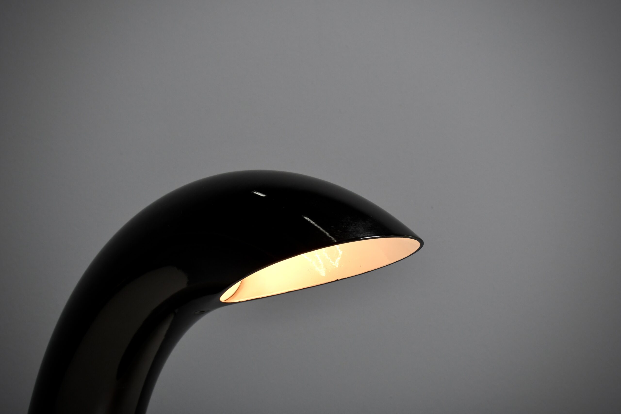 The lamp has a pristine glossy black lacquer finish, adding a touch of sophistication. Its design is a harmonious blend of simplicity and artistry, making it not just a source of soft, direct light but also an exquisite focal point that transforms your room.