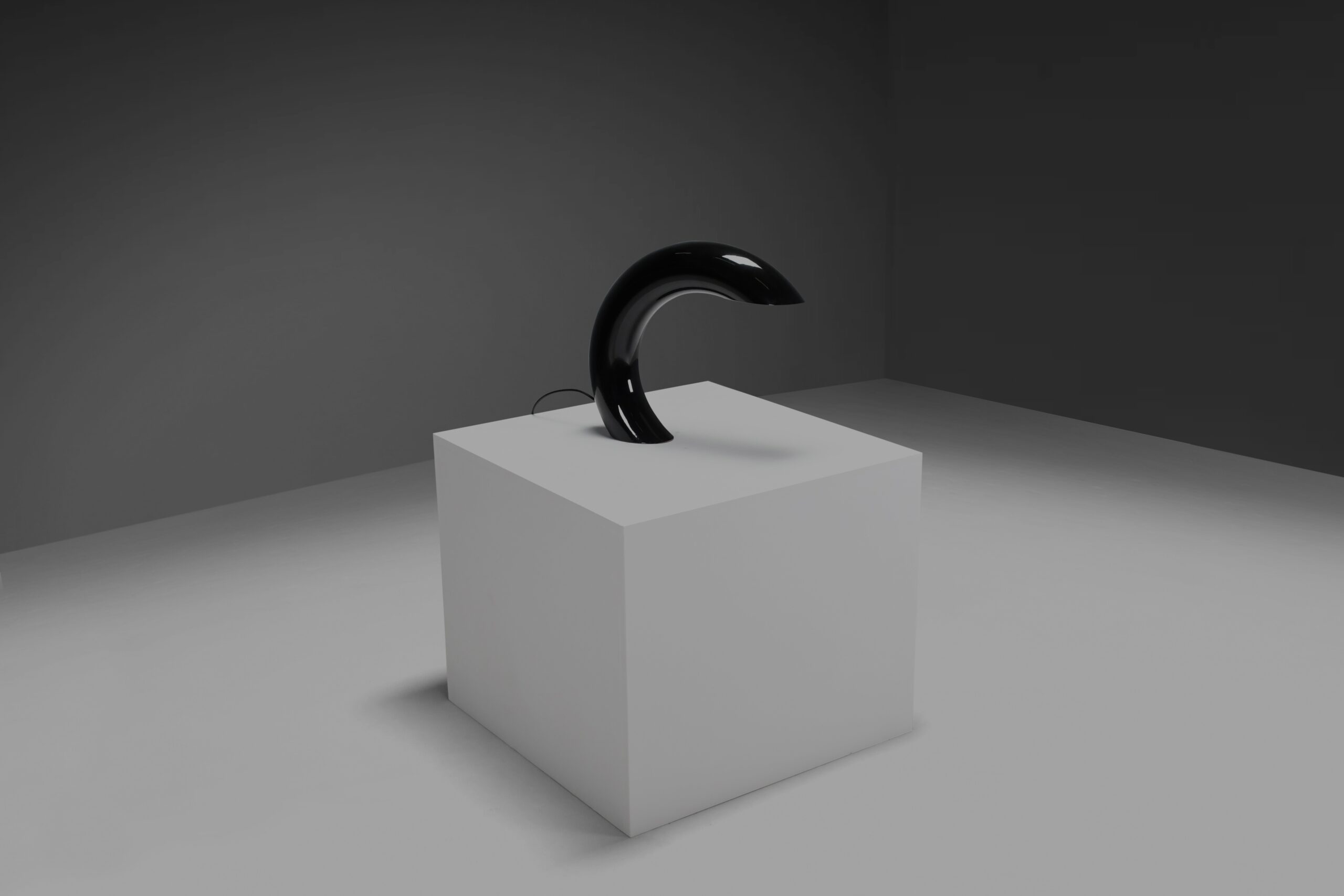 This lamp is a masterpiece of minimalistic elegance. Crafted from a solid circular tube of heavy cast aluminum, this sculptural table lamp stands as a testament to the timeless marriage of form and function.