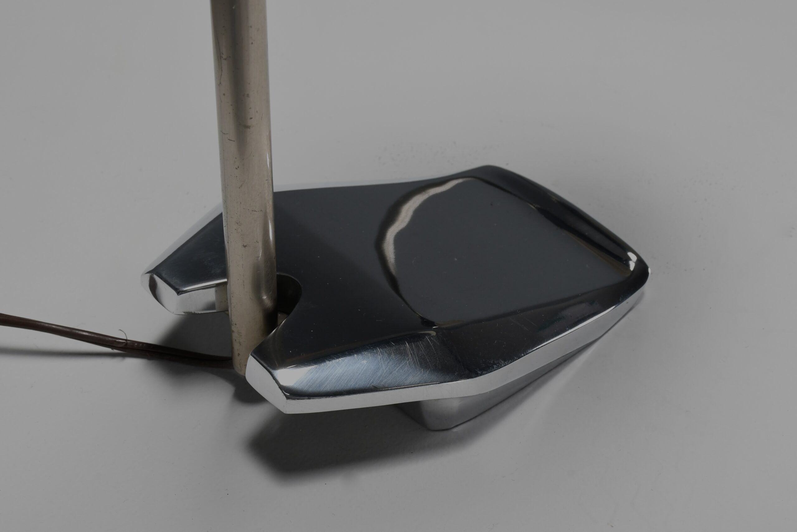 Particularly active during the 1950s and 1960s, Torlasco’s lighting designs – which span sconces, floor lamps, and chandeliers – often utilized industrial chromed steel which he paired with more luxurious materials such as marble, crystal, and brass. His eclectic designs ranged in style from industrial and Space Age to Italian Art Deco. In 1959, he was awarded a Compasso d`Oro for his public street light Genova 4053 (1959).