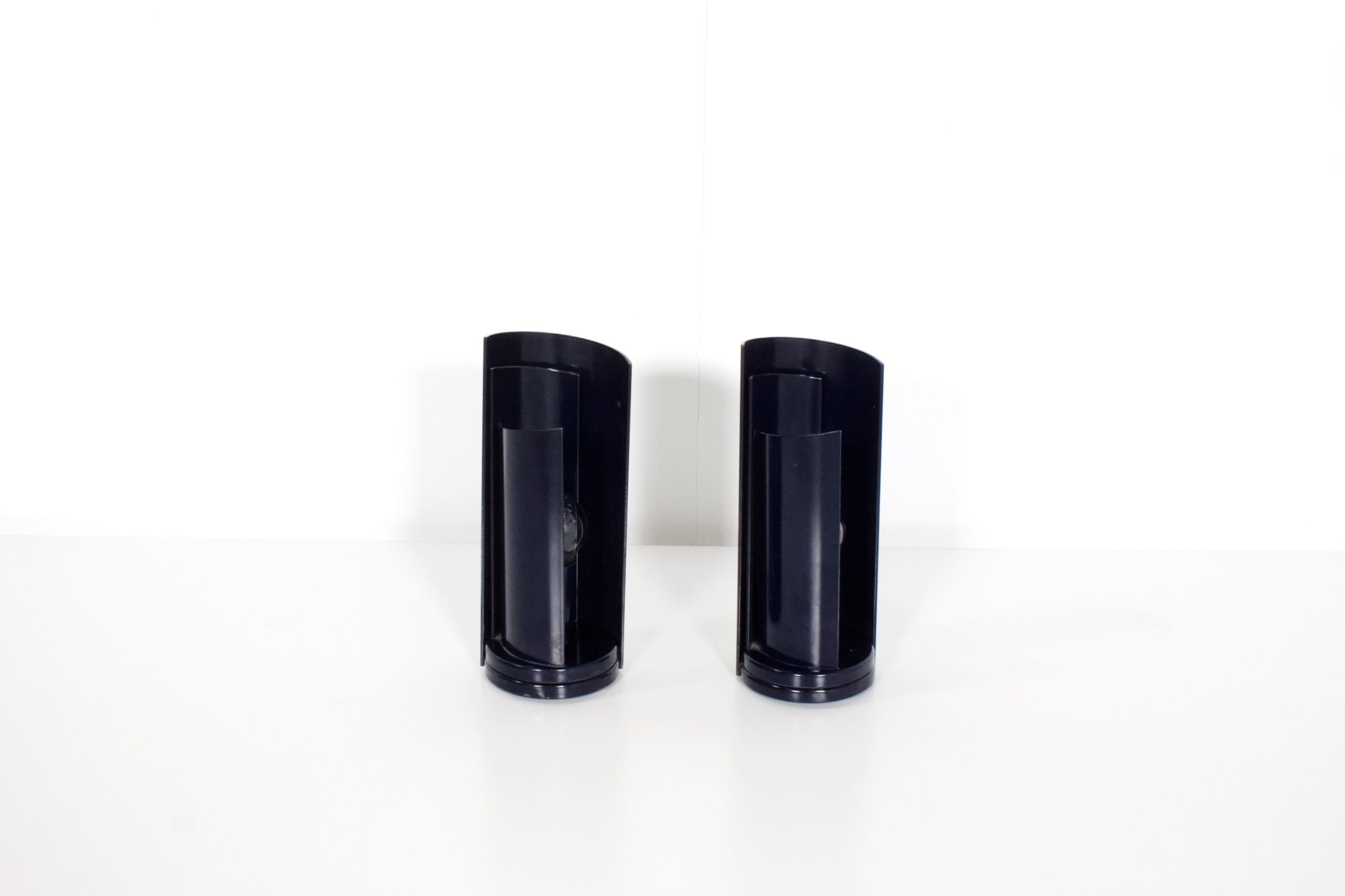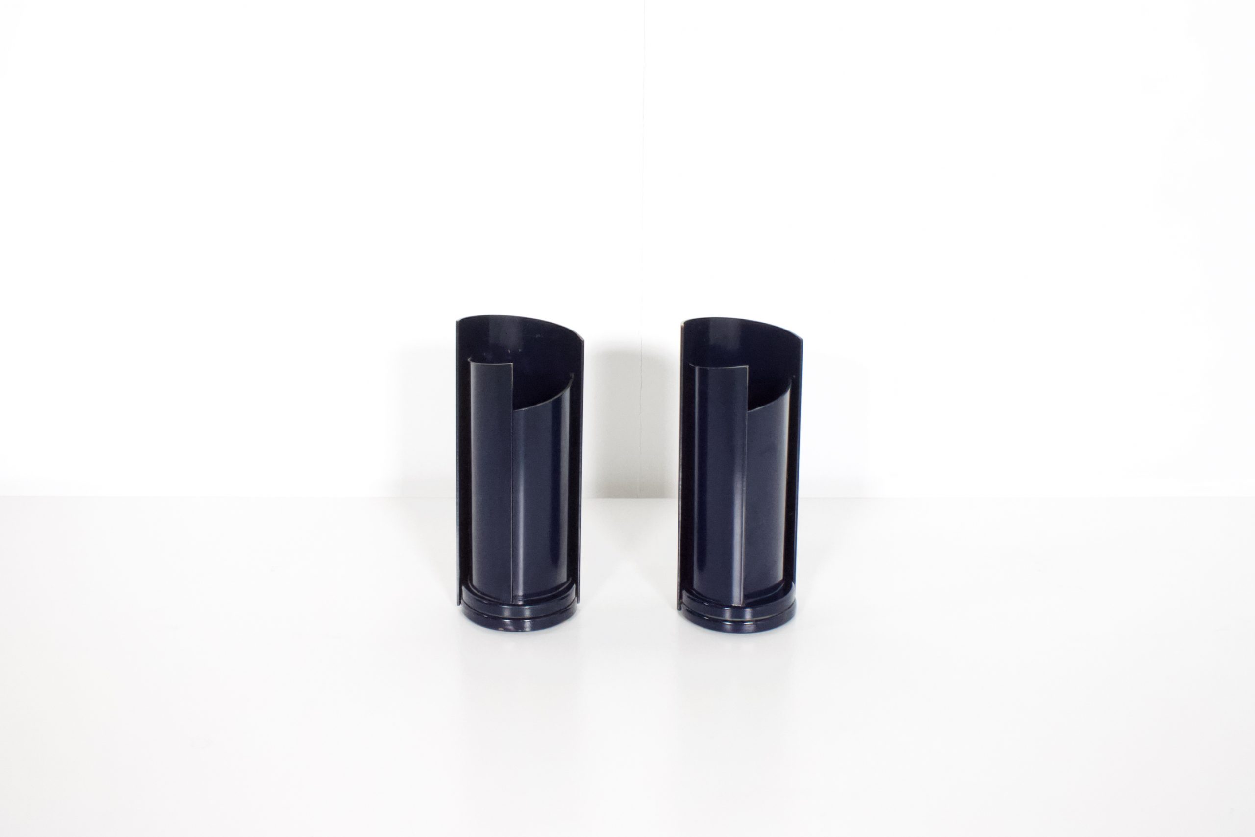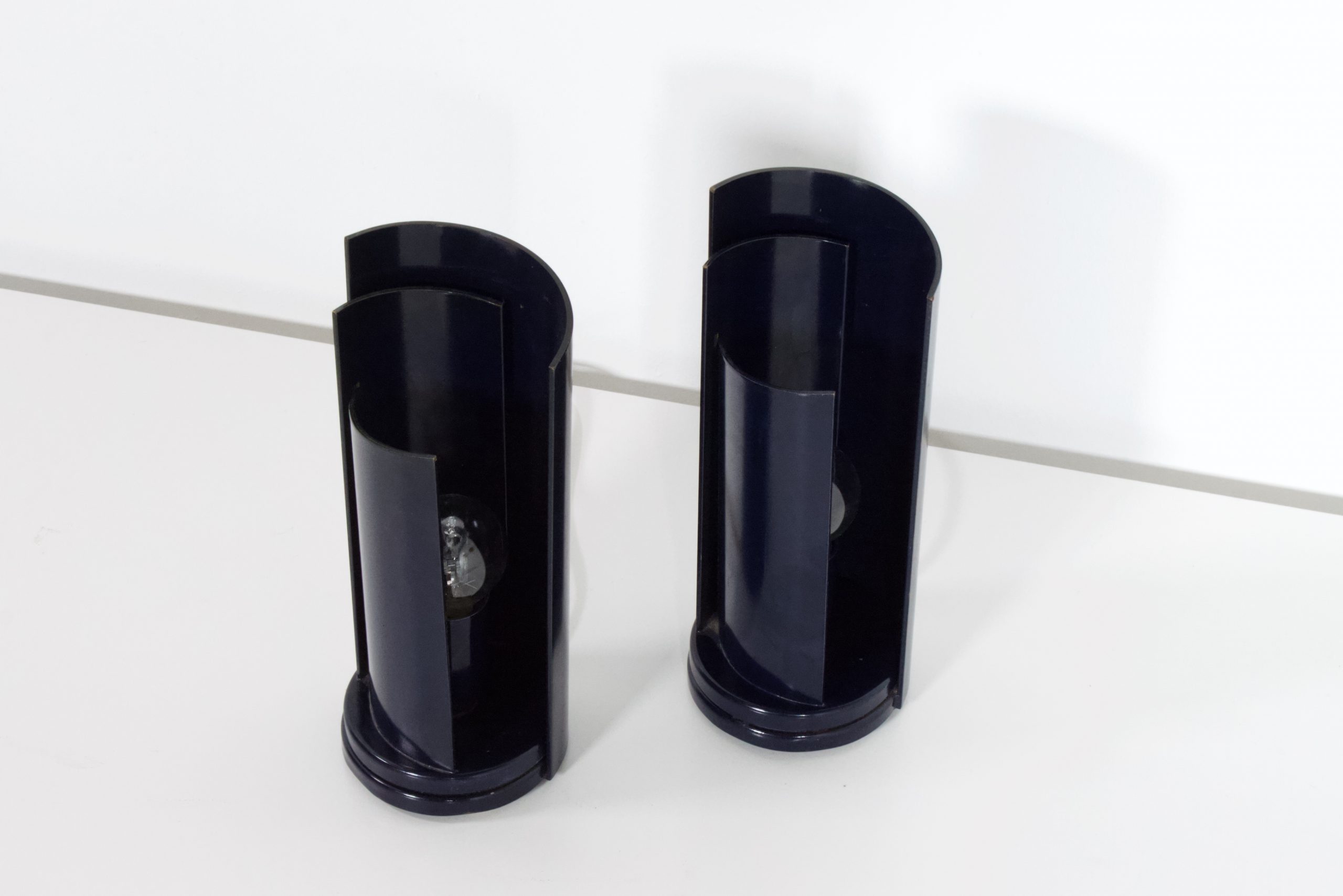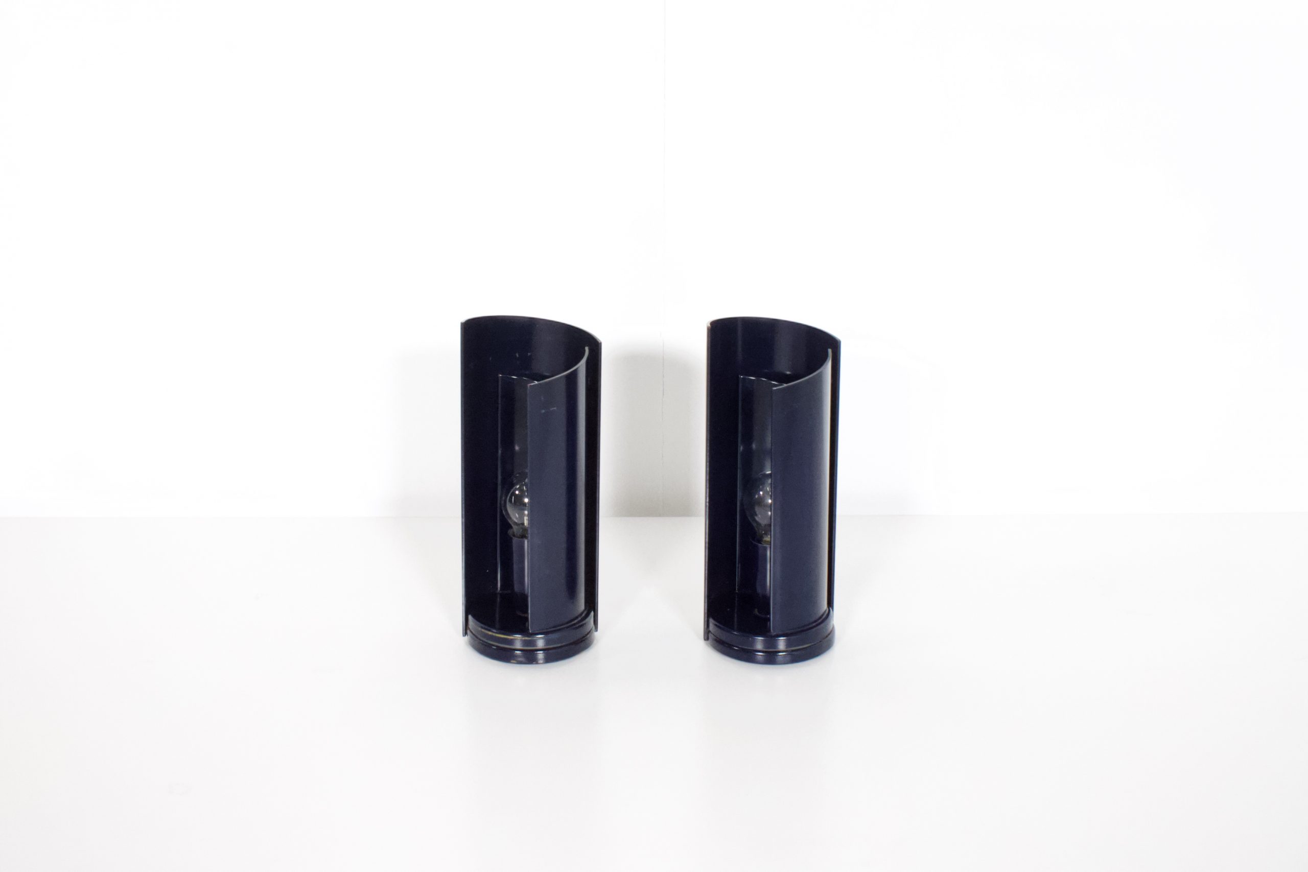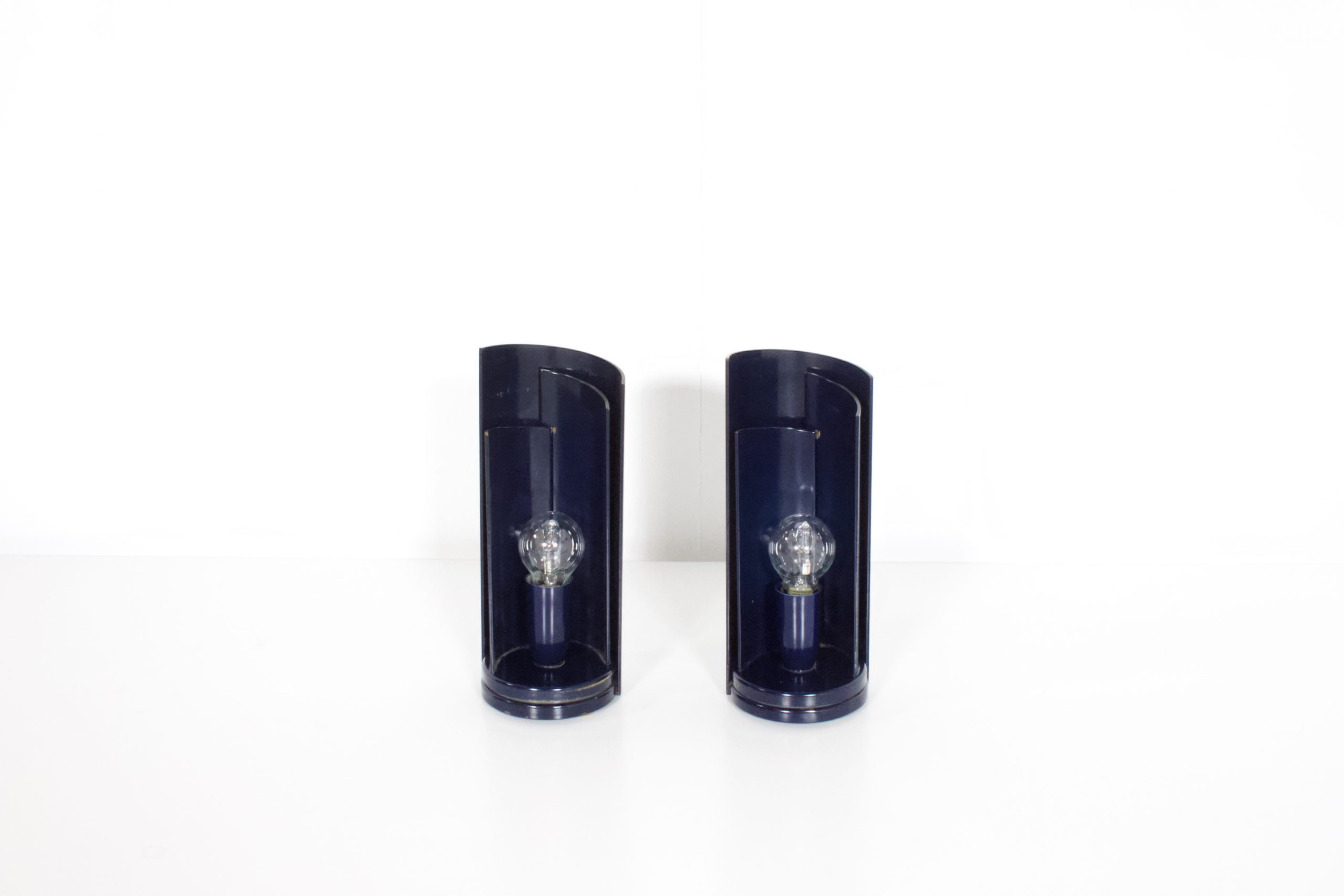 These lamps are made of metal en lacquered in a dark blue color.