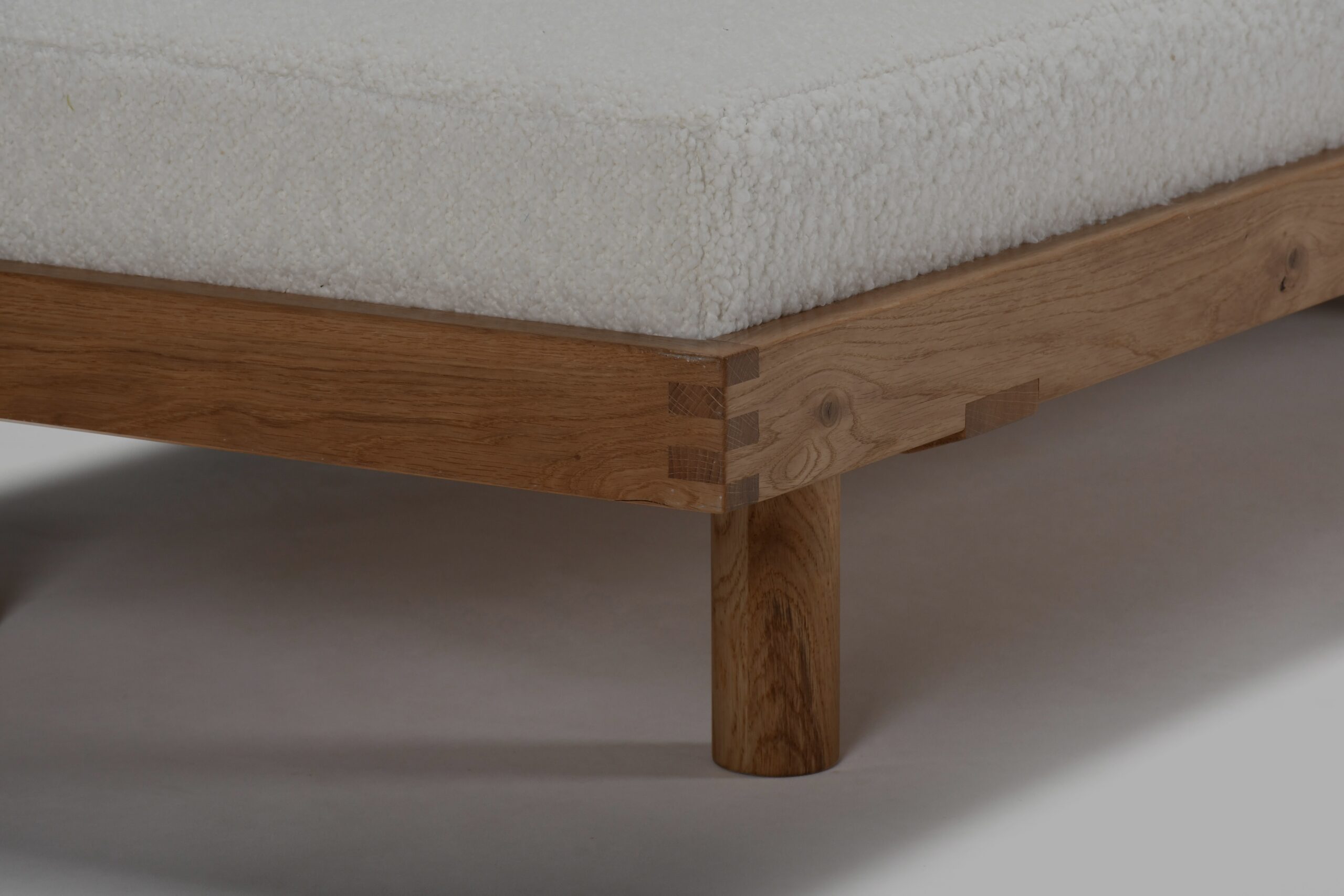 The mattress is new and professionally upholstered in a beautiful thick Bouclé fabric in a ecru/beige color.