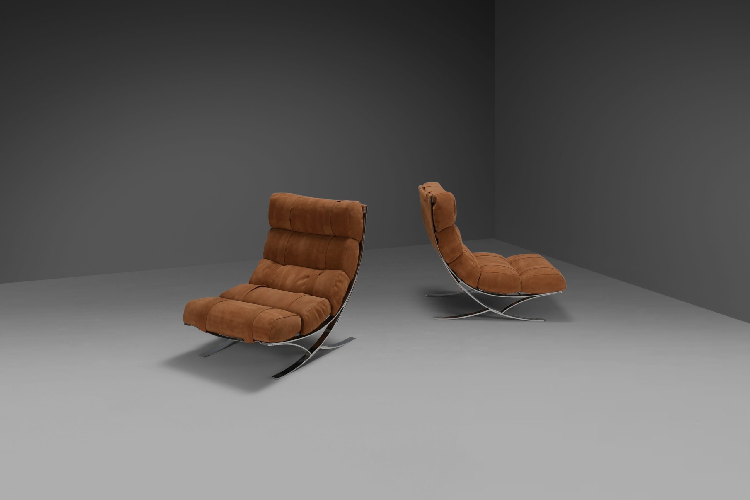 Impressive Suede and Chrome Lounge chairs