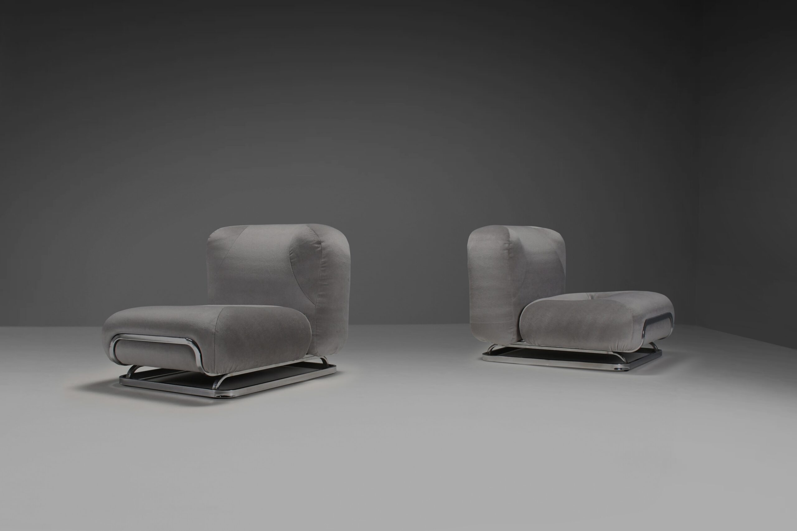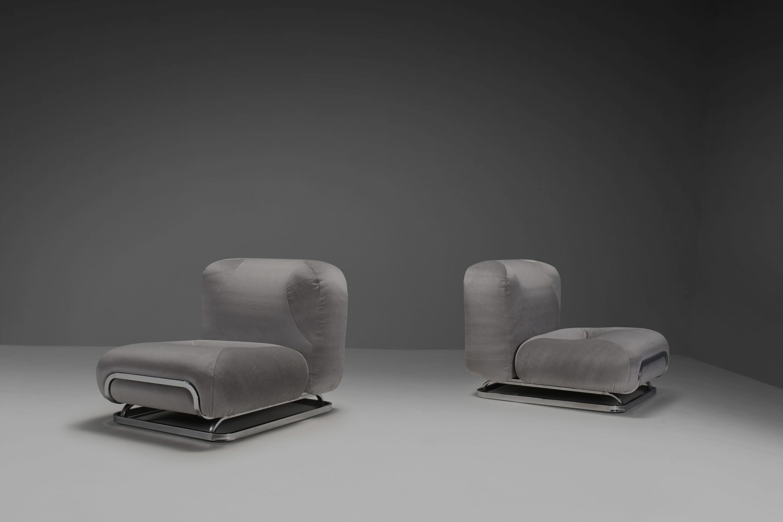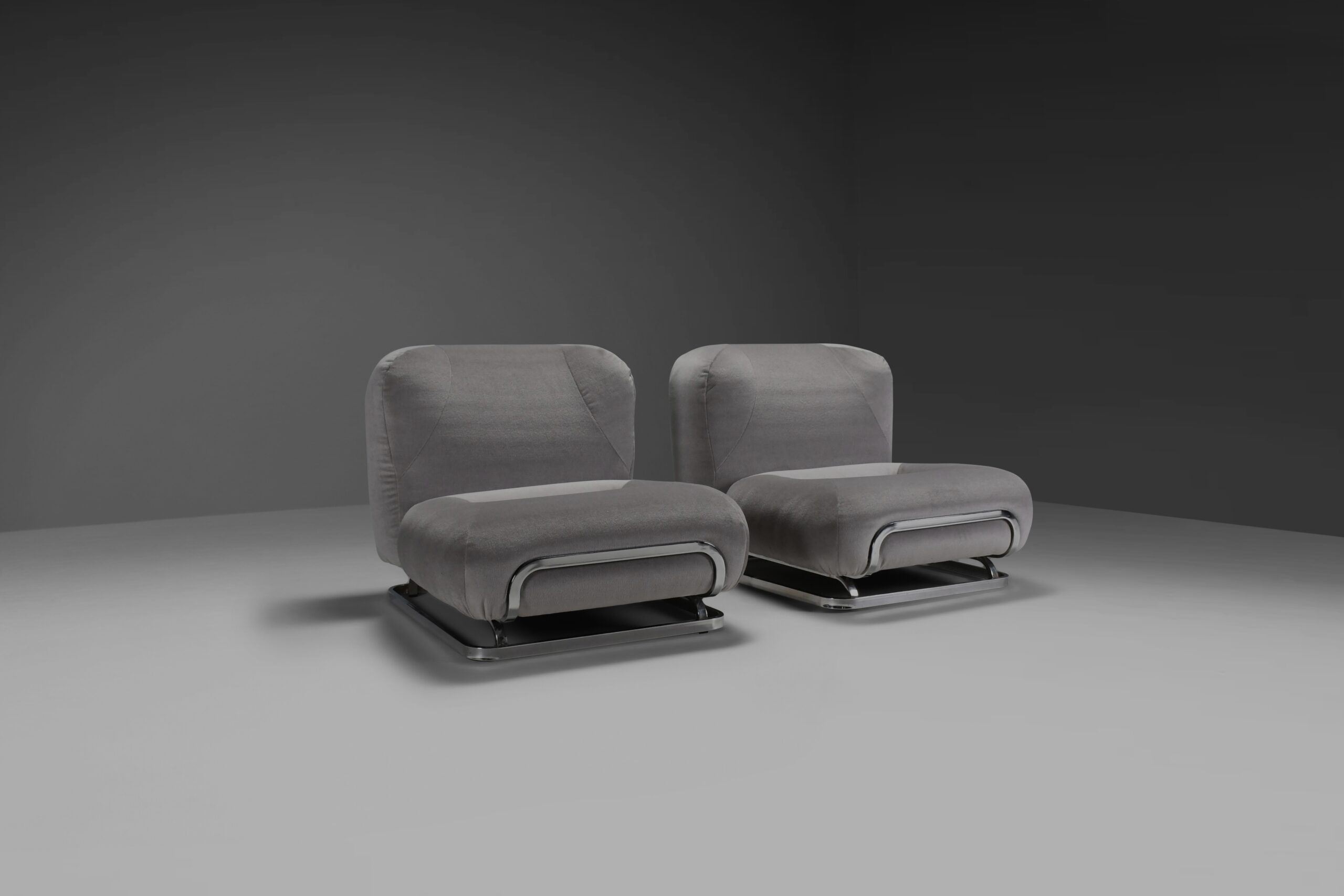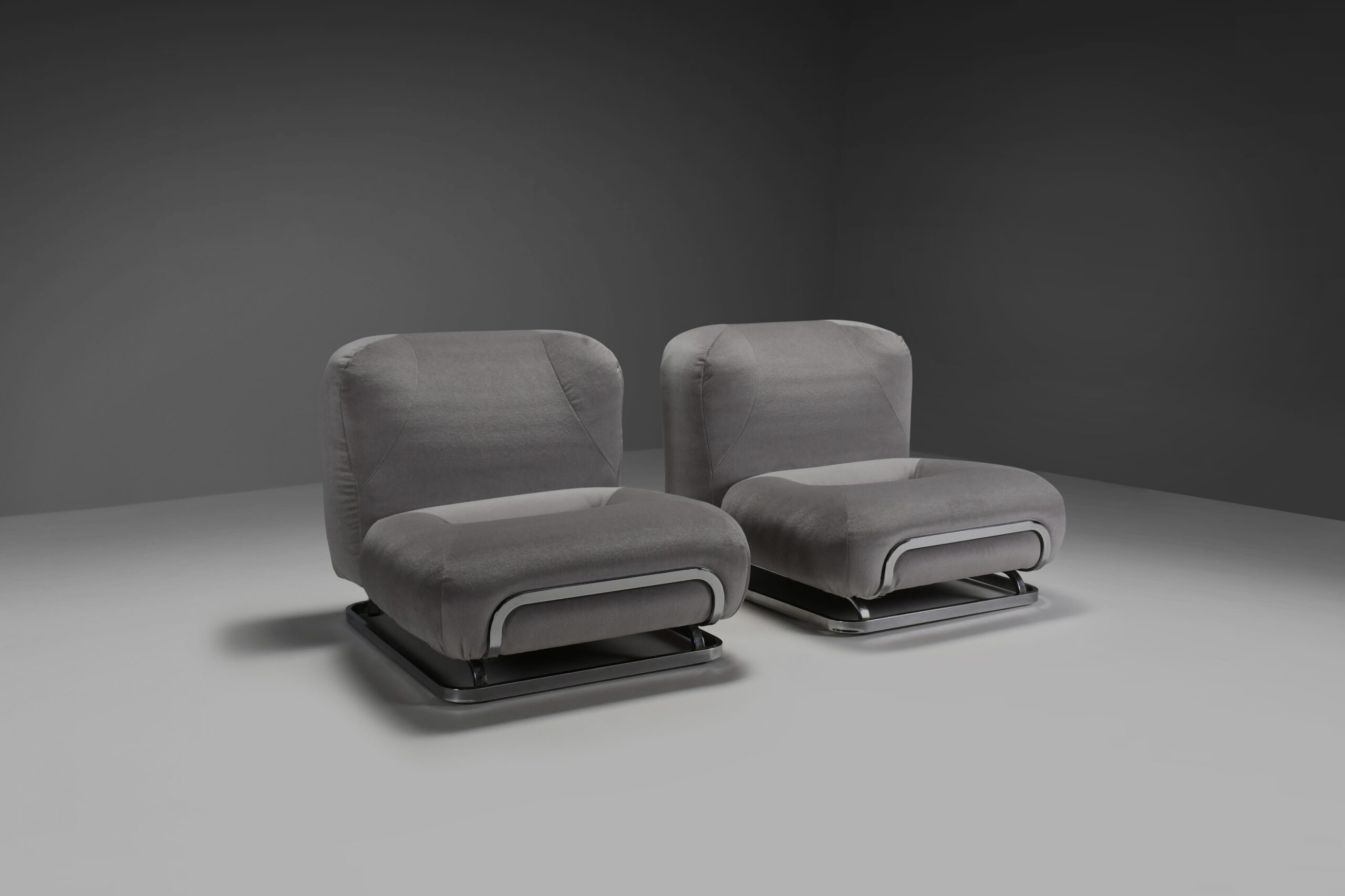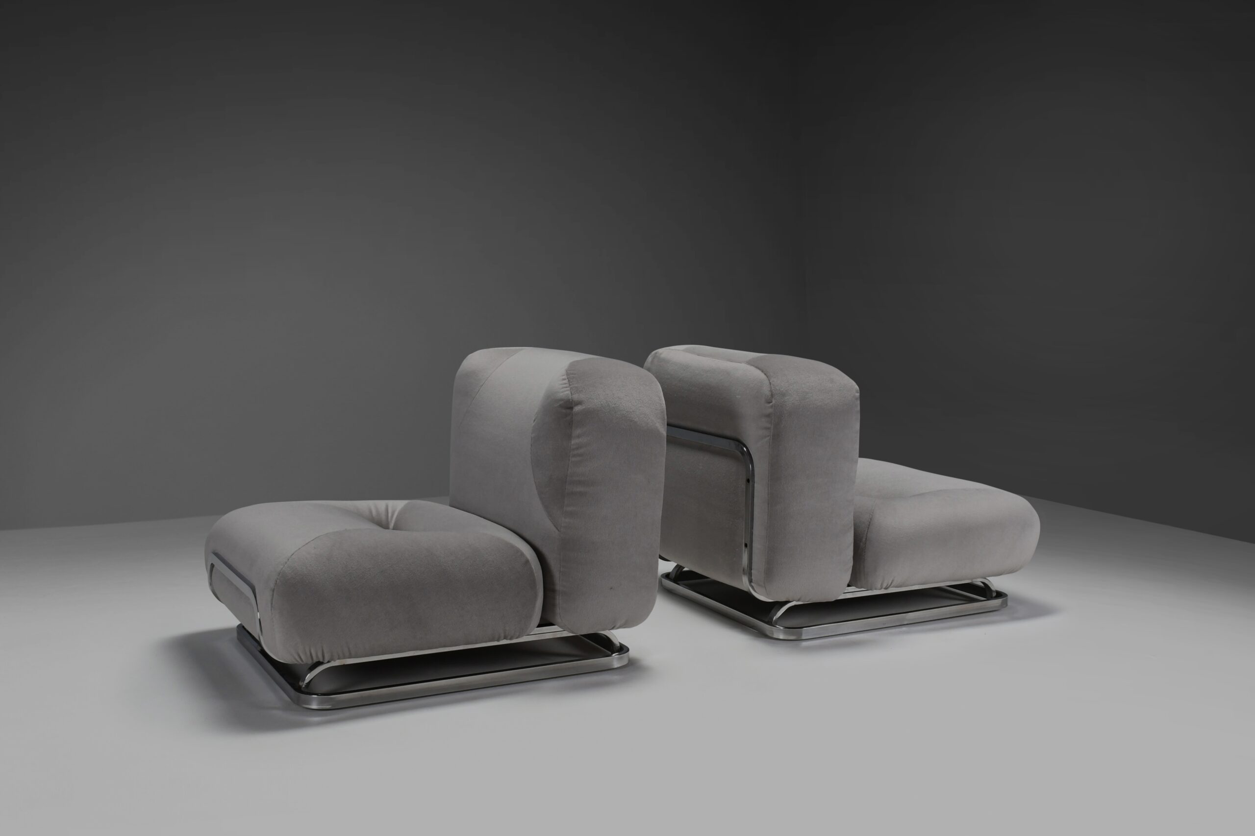 Mohair and Chrome Lounge Chairs Designed by Malchioro for IPE