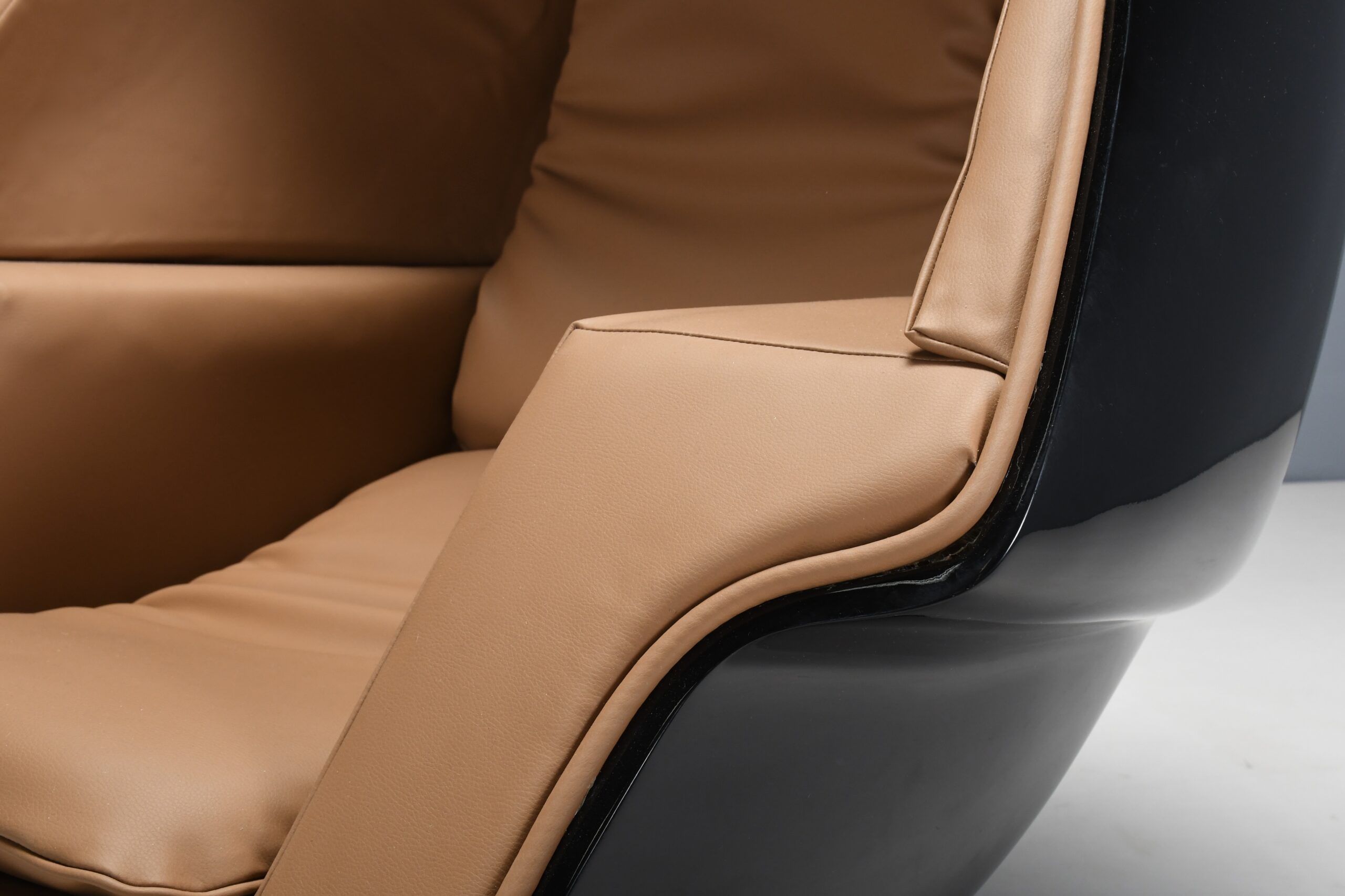 The outer shell of this chair is fully made from fiberglass which is lacquered in a beautiful glossy black color.