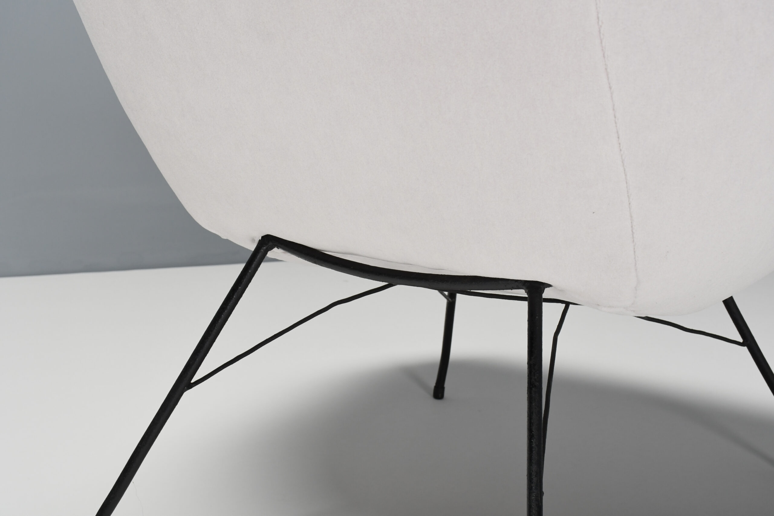 The shell is reupholstered in a thick high quality off-white velvet.