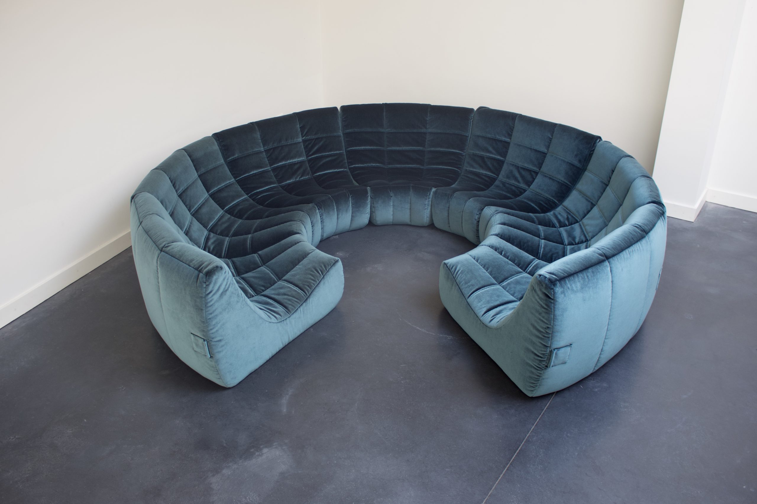 Seven elements form the original sofa, one additional element can be used to make a full circle.