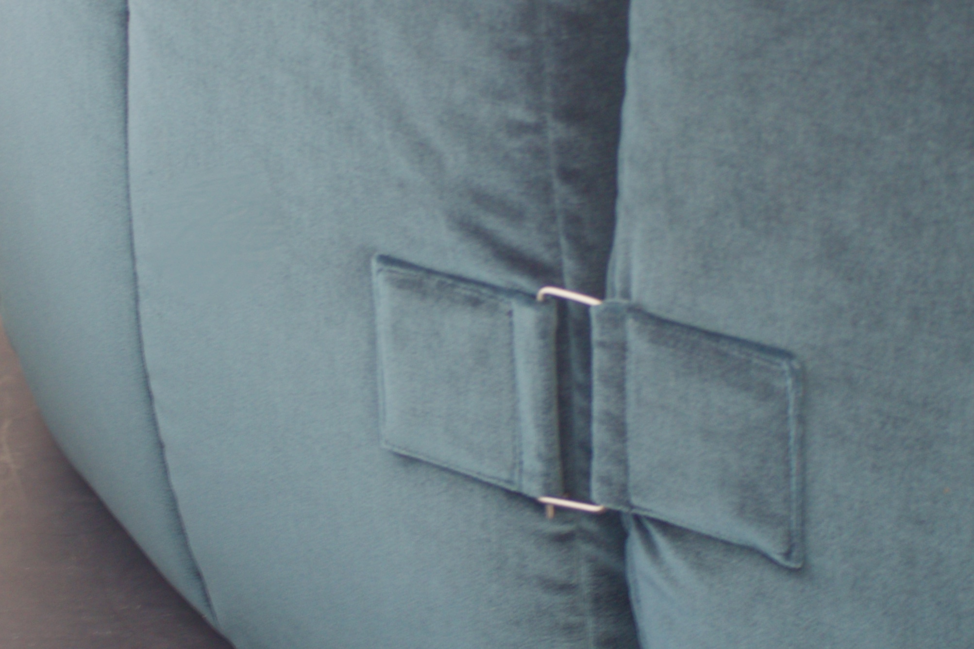 Reupholstered in a high quality petrol colored velours which gives a beautiful and rich effect.