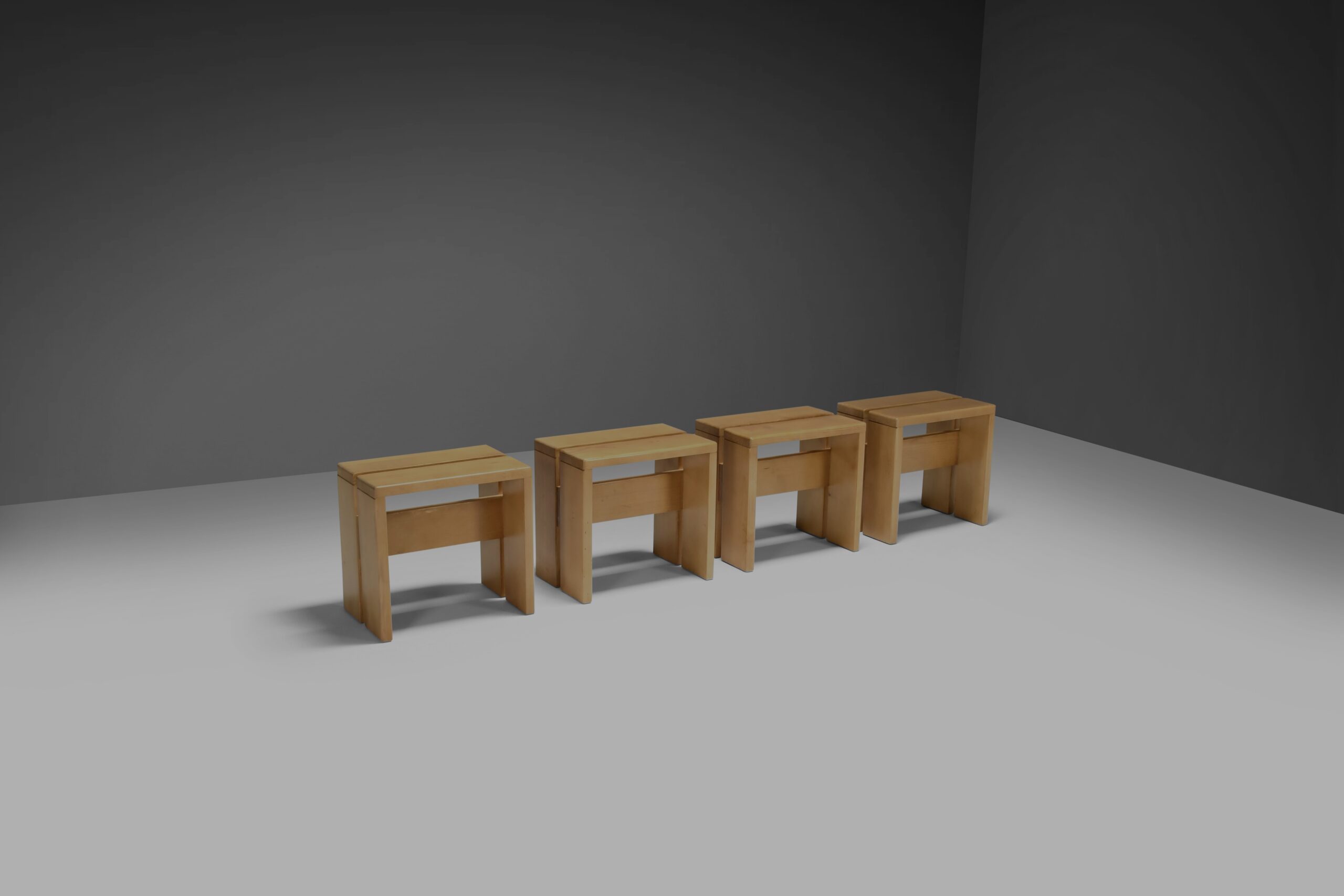 Set of Four Charlotte Perriand Stools for Les Arcs