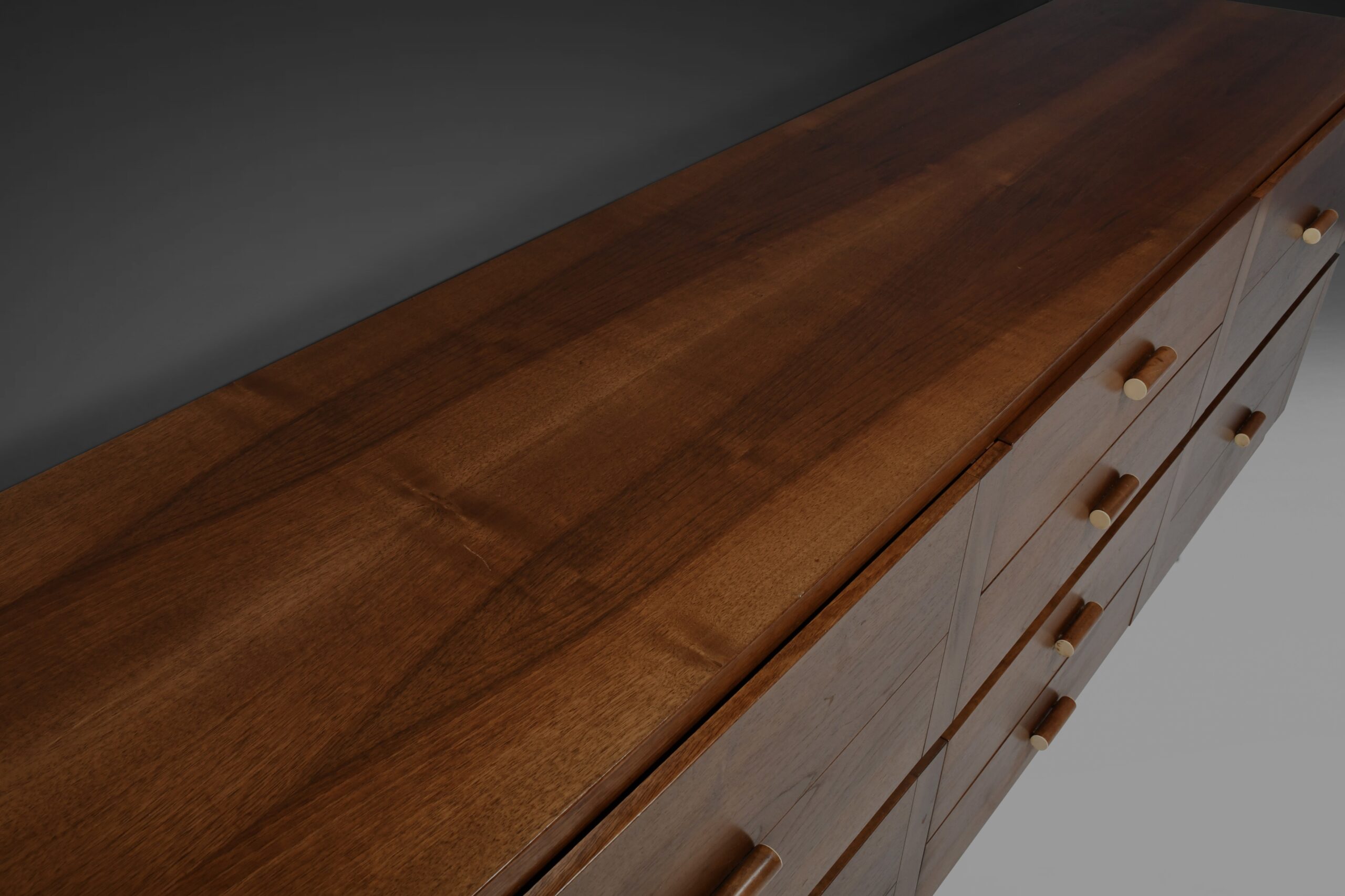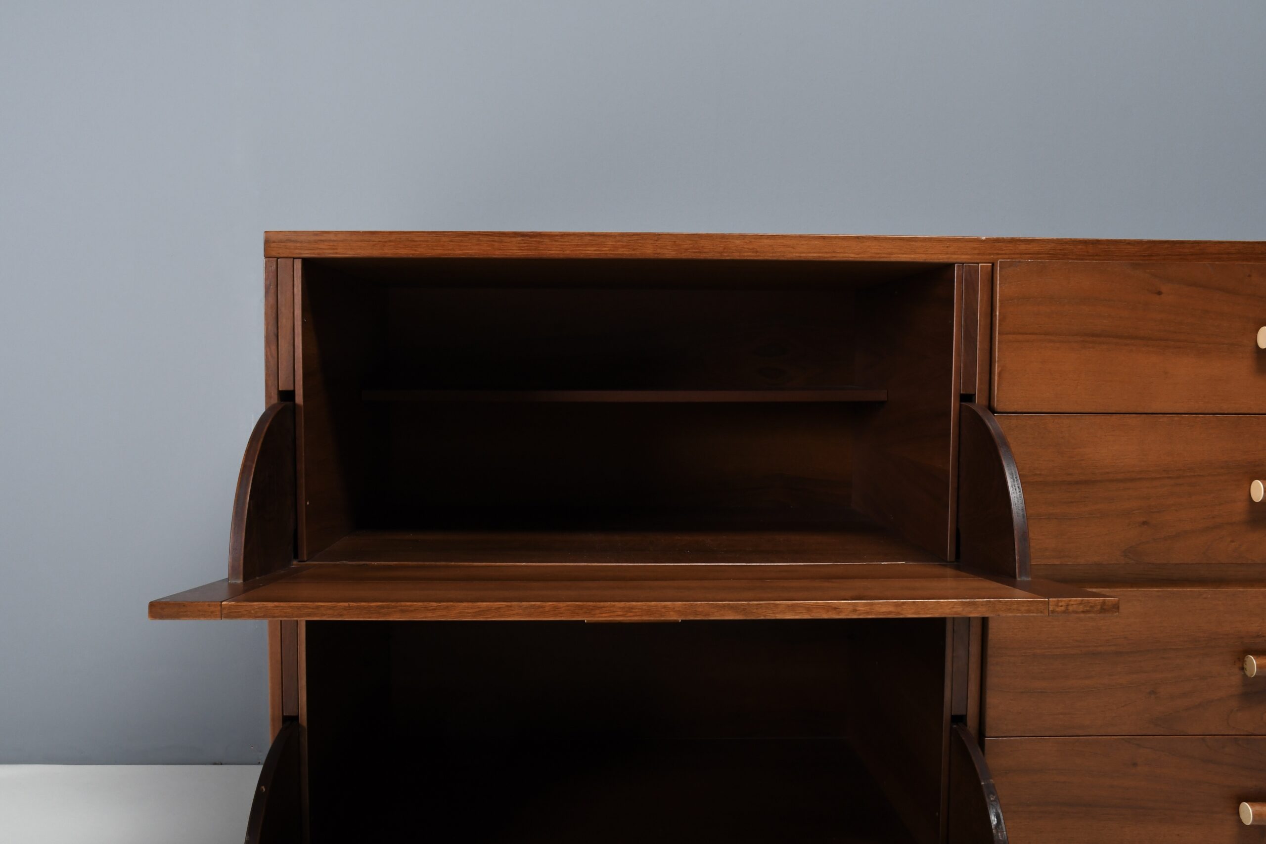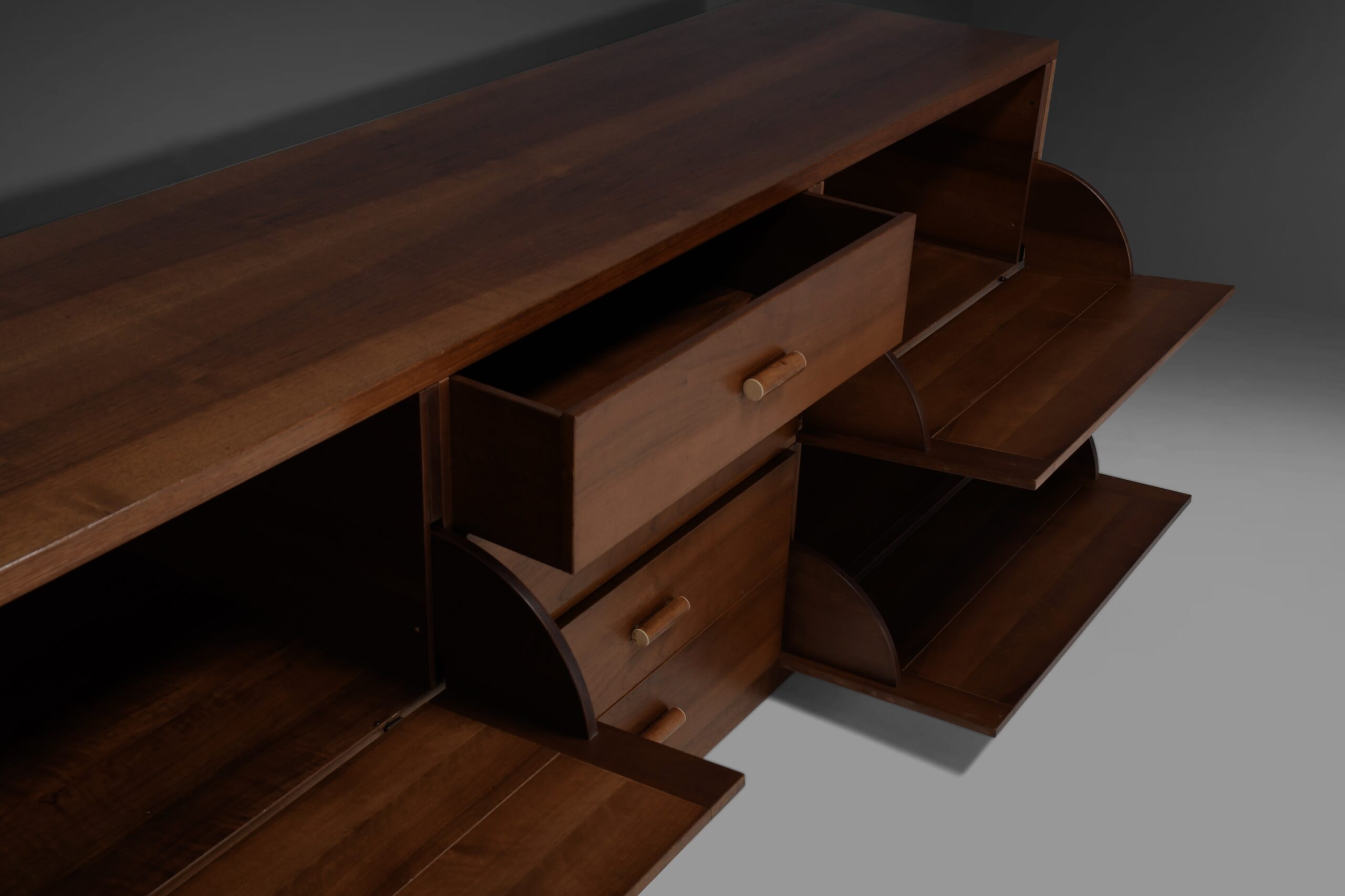 The backside of this sideboard is also finished in walnut so it can be used as a freestanding unit or room divider.