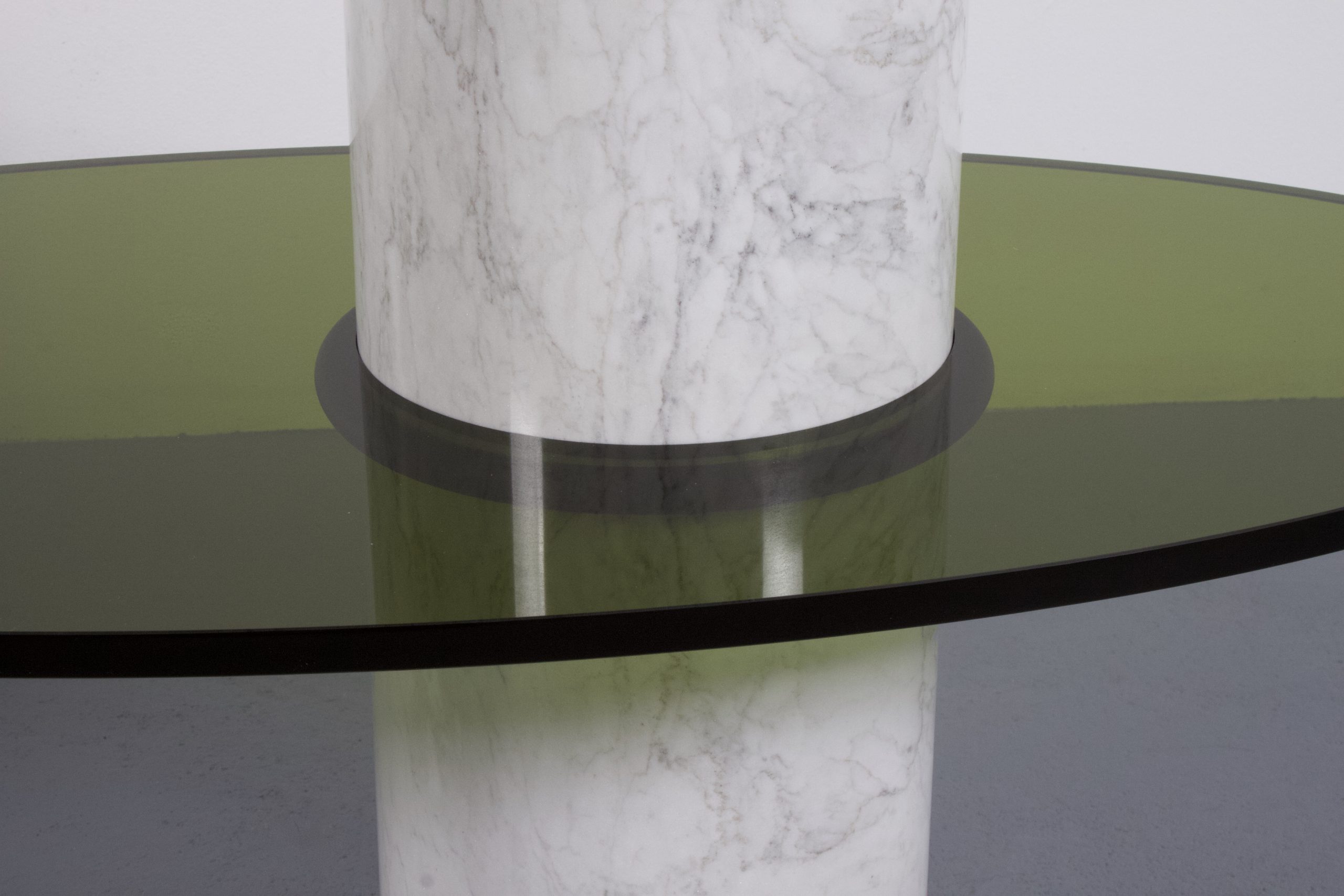 The heavy column is made of polished Carrara marble.